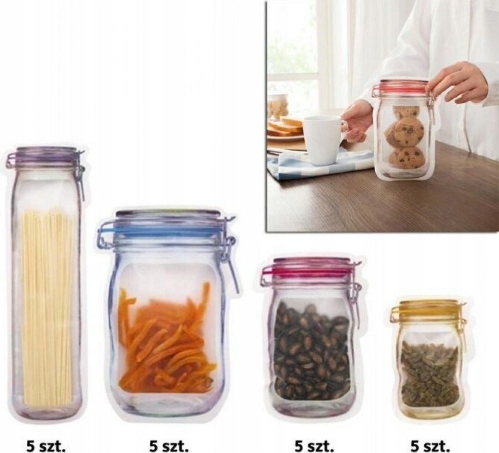 Zavírací sáček se nápadně podobá uzavíratelné sklenici, ale oproti sklenici má tu výhodu, že je mnohem lehčí a lépe skladný. Tento typ sáčku je opatřený vzduchotěsným zipovým zavíráním. Proto budou potraviny po vyjmutí jako čerstvé. Vhodný na potraviny jako například koření, těstoviny, oříšky nebo rýži. Možnost opakovatelného používání. Díky svojí velikosti ho můžete využívat také při cestách na svačinu.