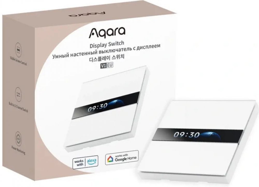 Aqara Display Switch V1 EU je dvoukanálový nástěnný vypínač vyžadující neutrální vodič, vybavený čtyřmi fyzickými tlačítky a 2,08palcovým LCD displejem. Umožňuje přizpůsobení texty podle zařízení a preferencí uživatelů, čímž usnadňuje identifikaci ovládaných zařízení. Funkce sledování spotřeby pomáhá zvyšovat energetickou efektivitu. Díky Matter over Bridge ho mohou uživatelé integrovat do ekosystémů třetích stran.