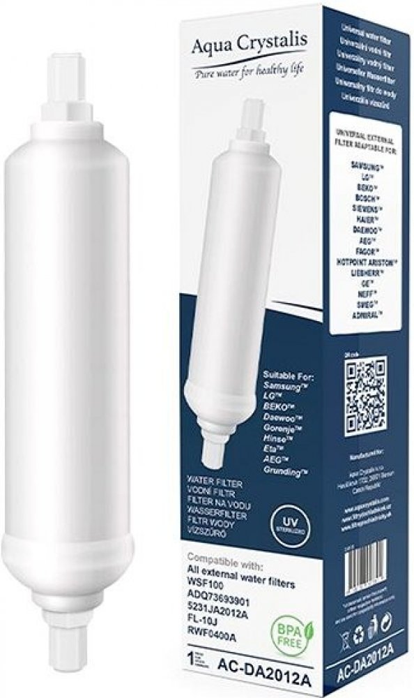 Aqua Crytalis AC-DA2012A univerzální vodní filtr na hadičku pro všechny typy ledniček, které mají filtr umístěný na přívodní hadičce.
