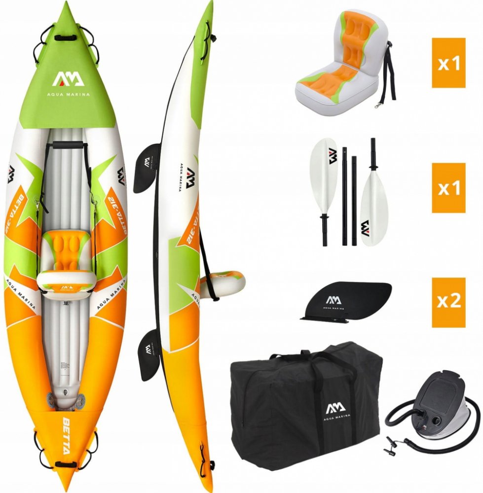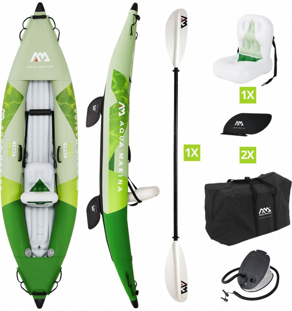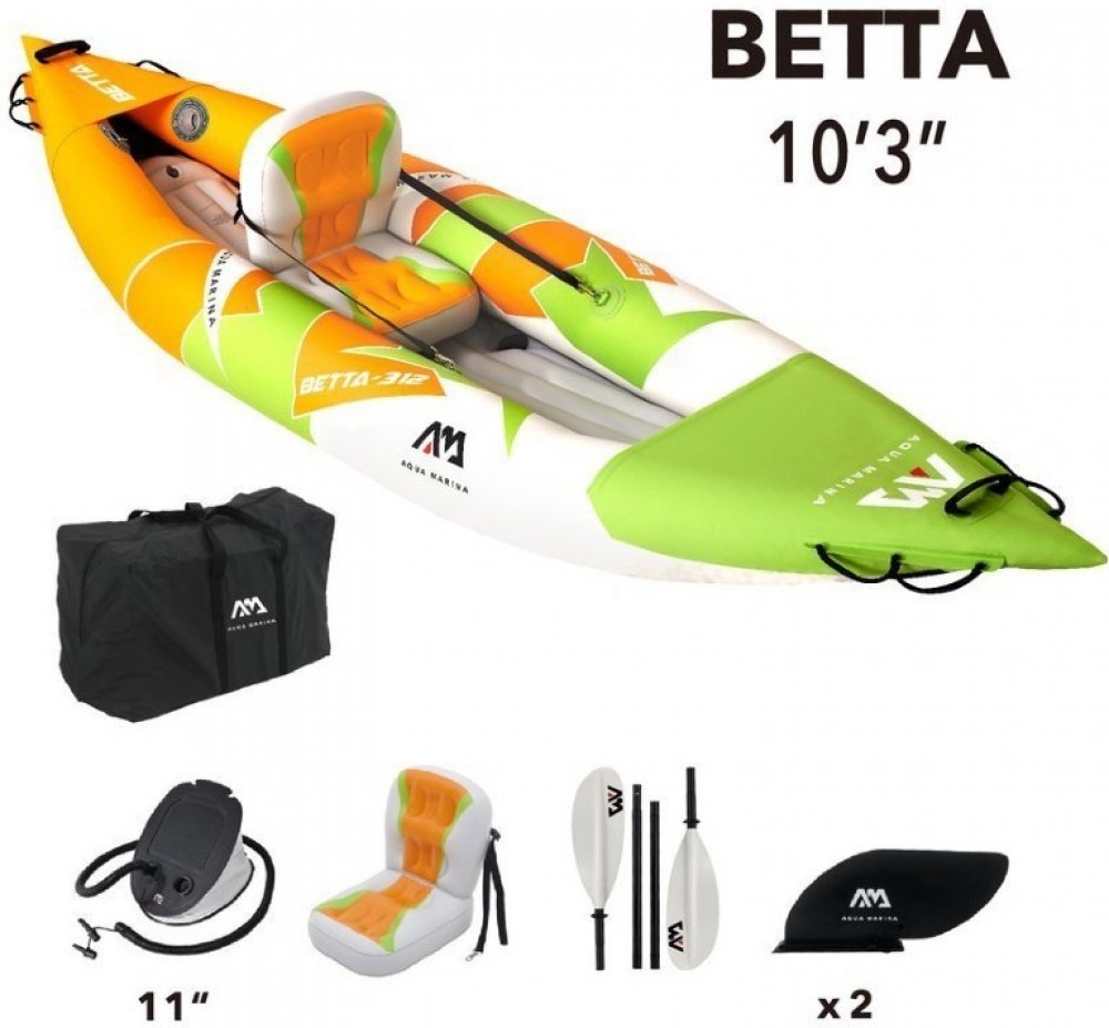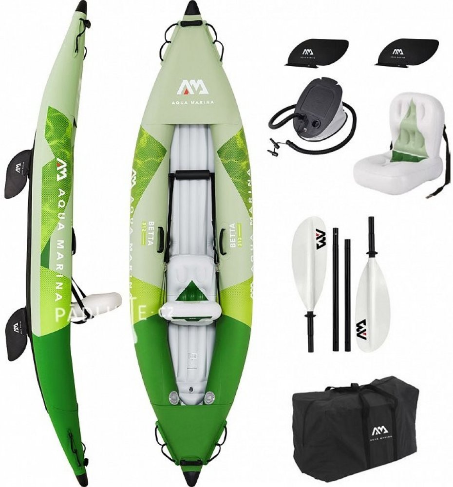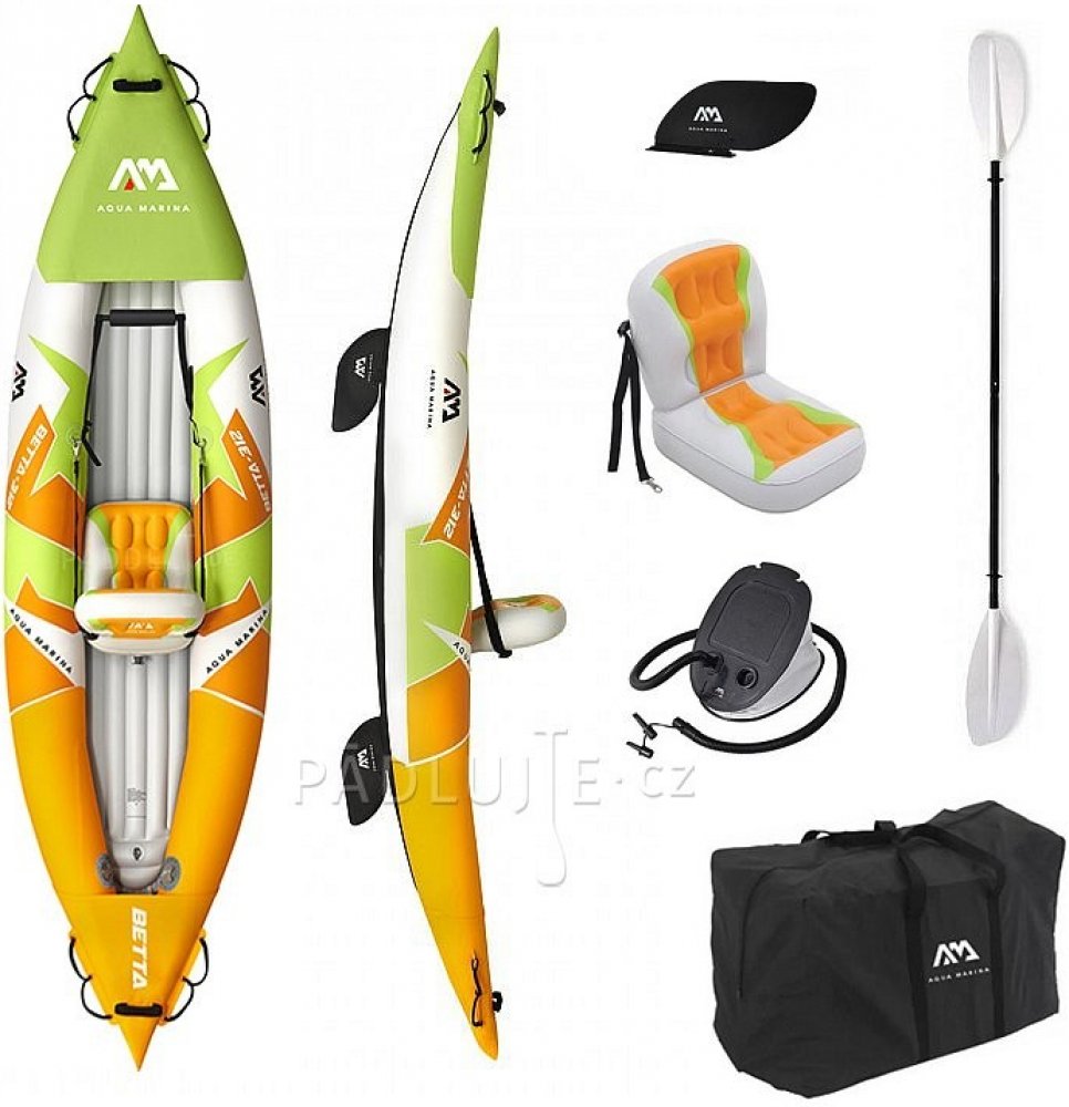 Rekreační nafukovací kajak Aqua Marina Betta Je vyroben z vyztuženého vícevrstvého PVC materiálu, který je velice mechanicky odolný a nenáročný na údržbu.