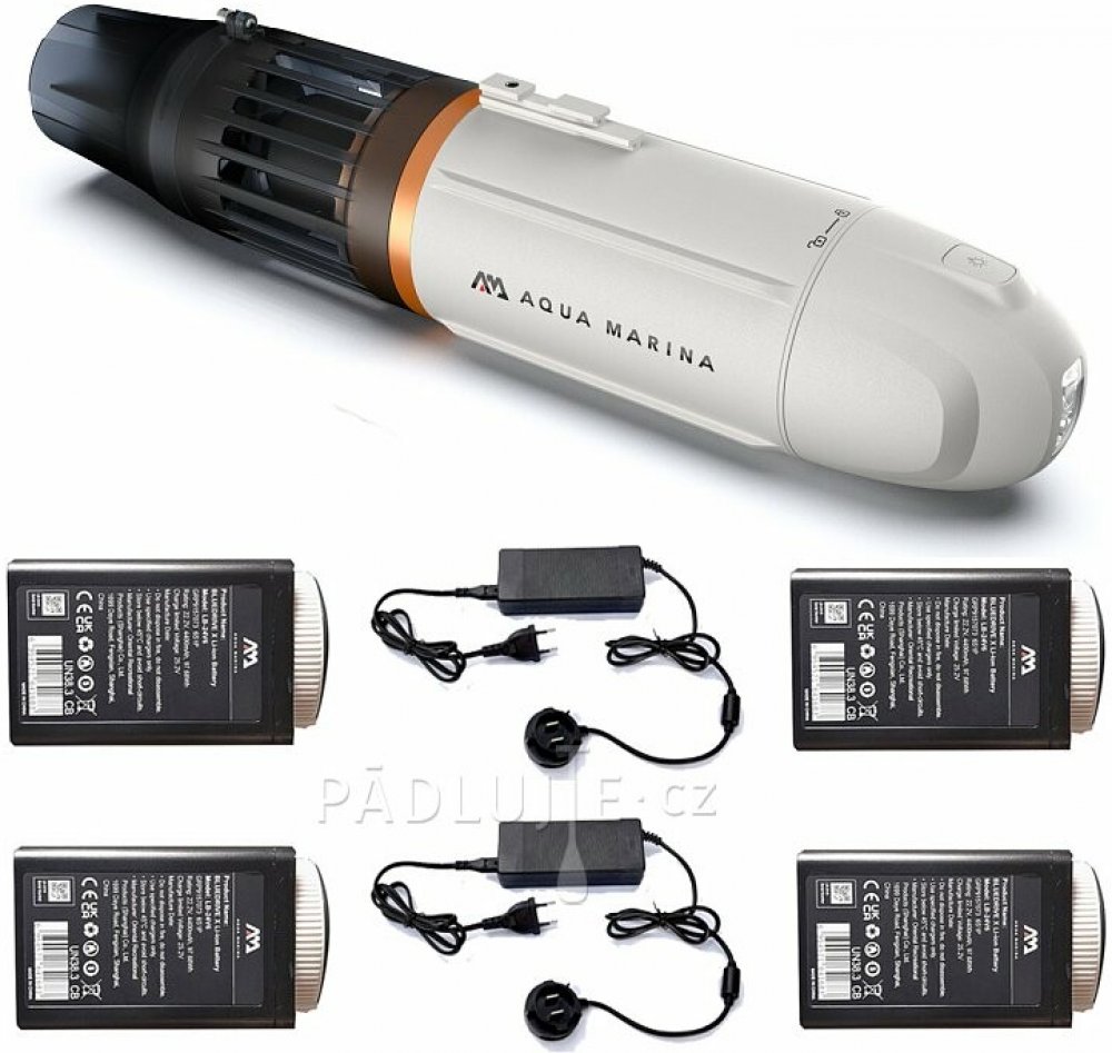 Pustili jsme se do testování elektrického motoru AQUA MARINA BluedDrive X PRO 2026 MODEL 3.0, který je v základní sadě dodáván se dvěma bateriemi a jednou nabíječkou. Výdrž motoru v základní sadě je až 100 minut, což považujeme za velmi solidní délku.