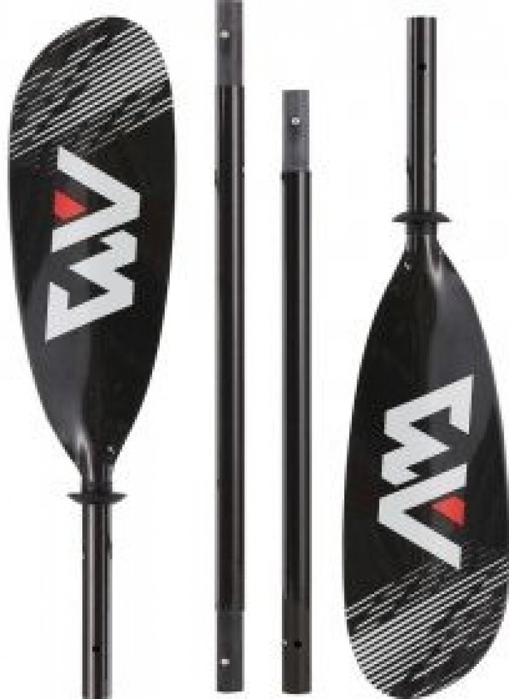 Vynikající čtyřdílné kajakové pádlo AQUA MARINA s karbonovými listy a shaftem kombinující karbon a sklolaminát. Ochrana proti kapající vodě, 3 polohy nastavení listu.
