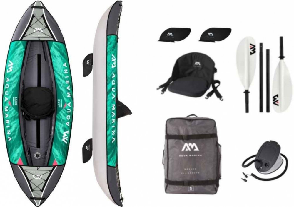 Kajak je dodáván včetně nožní pumpy, transportního batohu, 1x kajakového pádla, 1x sedačky a dvou flosen. Díky nízké váze se snadno přenáší a proto je vhodný i pro děti.