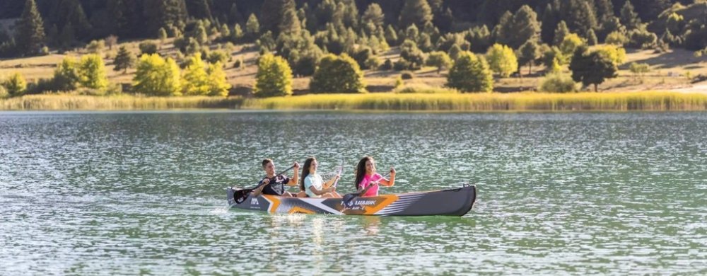 TOMAHAWK Air-C je výkonná kánoe pro dvě až tři osoby, vyrobená technologií Drop Stich. Kánoe má dvojitou stěnu a vyznačuje se vysokou tuhostí, odolností a výjimečnými jízdními vlastnostmi. Nafukovací kánoe TOMAHAWK je o 40 % lehčí než tradiční pevná kánoe stejné třídy. Zásluhou ostrého tvaru a dlouhého trupu, se kánoe pyšní vysokou rychlostí a výkonný systém ploutví udržuje správný směr.