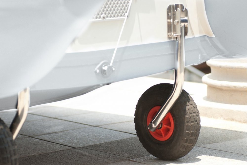 Kolečka jsou navržena tak, aby jednoduše umožnilo spuštění člunu jedním člověkem• Vyrobeno z odolné nerezové oceli námořní třídy• Dodává se s odolnými koly o průměru 10".• Max. zatížení 350 lbs (159 kg)