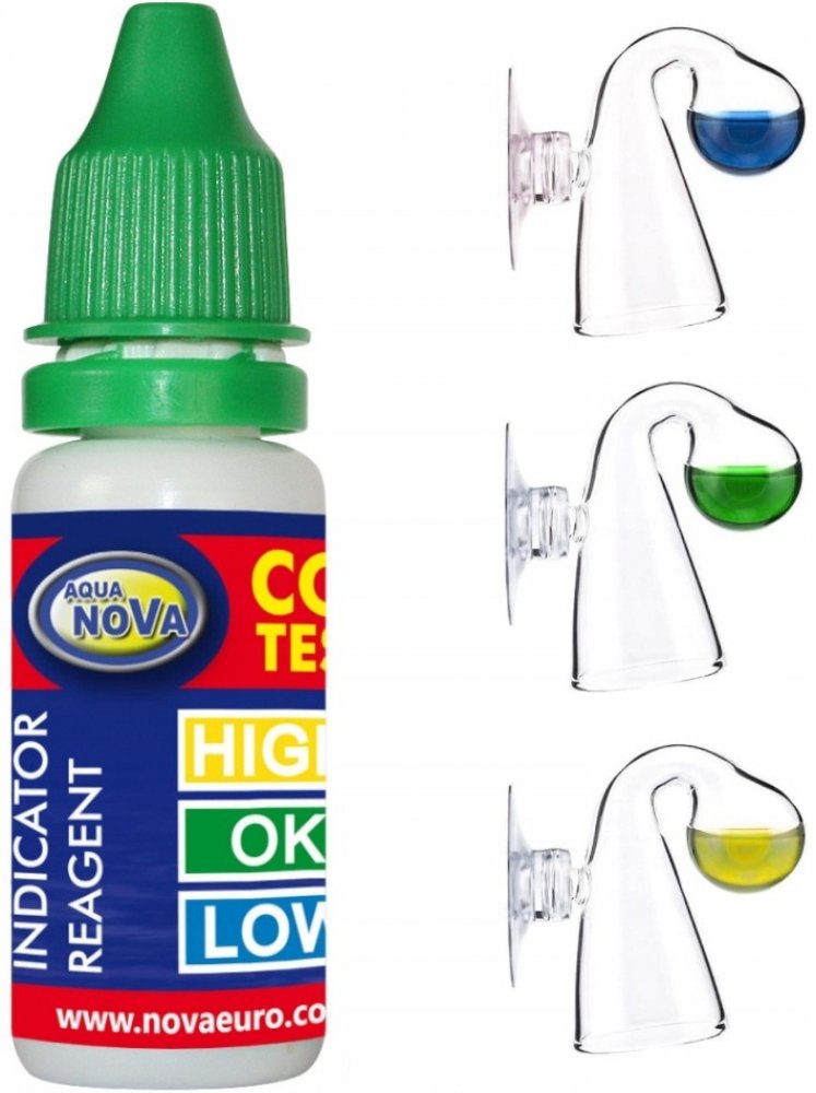 Roztok indikátoru CO2 je činidlo, které mění barvu v závislosti na koncentraci CO2 ve vodě. Používá v kombinaci s indikátorem, do kterého nalije roztok indikátoru a umístí dovnitř akvária. Stačí přidat 15 kapek kapaliny do skleněného indikátoru a posoudit úroveň koncentrace CO2 plynu v akváriu.