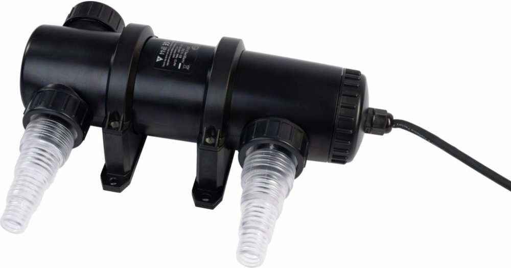 Vývod i přívod vody je konstruovaný pro běžné rozměry hadic. V případě potřeby je možné nahřát hadici a po změknutí opatrně nasadit na koncovku UV lampy.