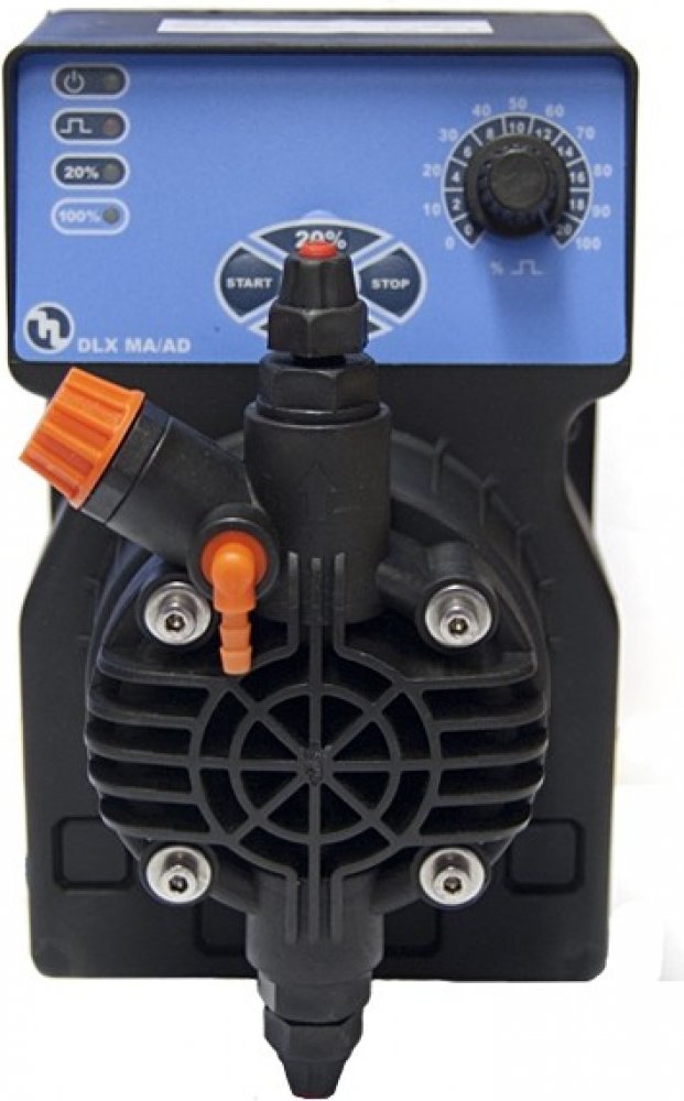 Manuální membránové dávkovací čerpadlo ETATRON DLX MA/AD 01 15 s maximálním průtokem 1l / hod. a s protitlakem 15 bar určené pro konstantní dávkování chemikálií.Dávkovací čerpadlo se využívá na odstranění bakterií, zvyšování nebo snižování pH, v uzavřených chladících systémech k dávkování biocidu, siřičitanu nebo fosforečnanu. Montáž se provádí na rozvod vody. Pokud je nutné použít předfiltr - vžd...