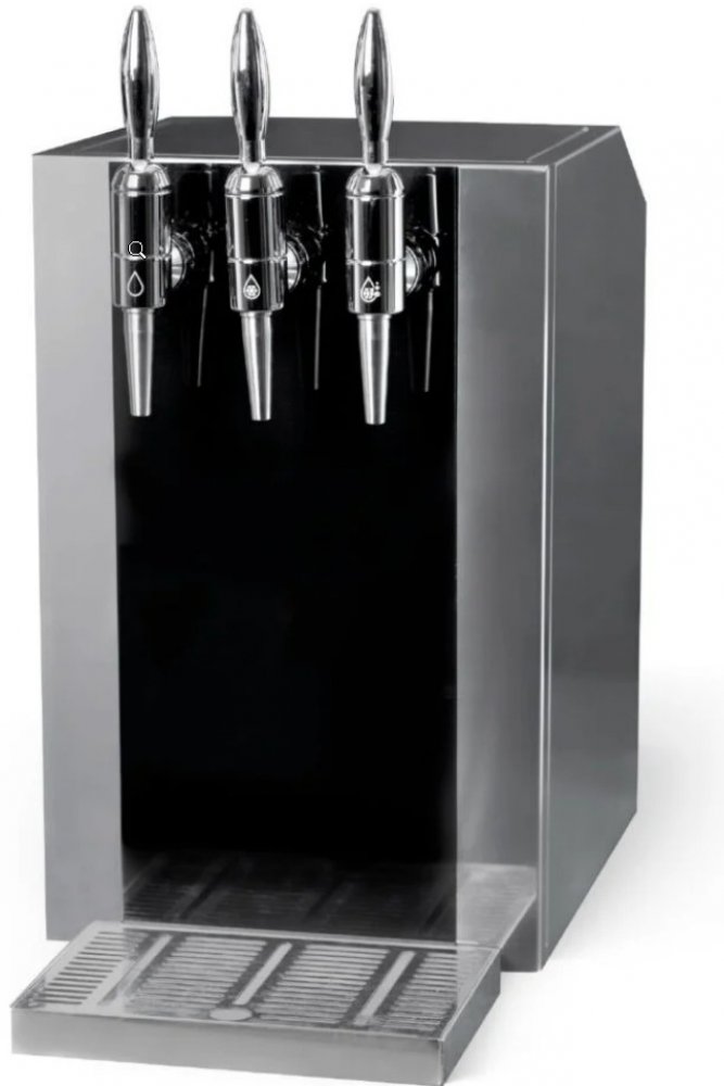 Tříkohoutový sodobar AQUA ACS slouží pro výdej pokojové, chlazené a perlivé vody. Je oblíbený především v restauracích, kantýnách, závodních jídelnách ale také ve výrobních halách, kancelářích jako zdroj pitného režimu zaměstnanců nebo v domácnostech. D...