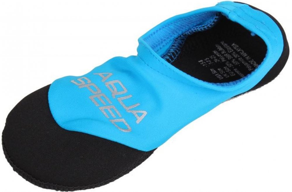 Obuv do vody Aqua-Speed Neo do bazénu pro dospělé a teenagery. Vyrobeno z měkkého a pružného materiálu. Protiskluzový povrch na podrážce. Chrání nohy před oděrkami. Je to dobrá volba, protože na rozdíl od žabek se ponožky nemusí sundávat při každém vstupu do vody.