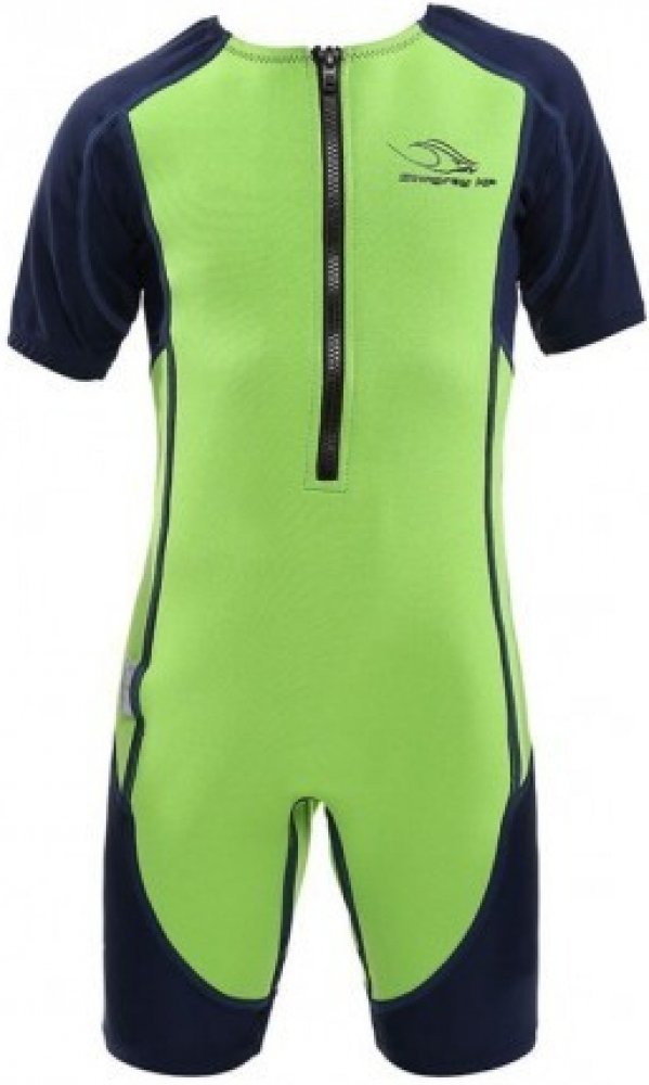 Hybridní dětská kombinéza STINGRAY udrží vaše děti v teple, ochrání je před ostrým sluncem a umožní jim volný pohyb při hrách ve vodě i na pláži. Skvělý neoprenový oblek pro děti do vody na plavání, šnorchlování i procházky po pláži. Hybridní konstrukce kombinuje neoprenový a lycrový materiál. Pro tepelný komfort je střed těla vyroben z neoprenového materiálu. Rukávy a nohavice na dětském neoprenovém obleku jsou pak ušity z lycry, která chrání před sluncem a současně nijak neomezuje děti v pohybu. Pro usnadnění oblékání je dětský short vybaven lehce ovladatelným předním zipem. Dětský oblek do vody Michael Phelps STINGRAY poskytuje dětem 100 % ochranu před UVA i UVB zářením, rychle schne a děti se v něm cítí pohodlně po celý den, strávený u vody.