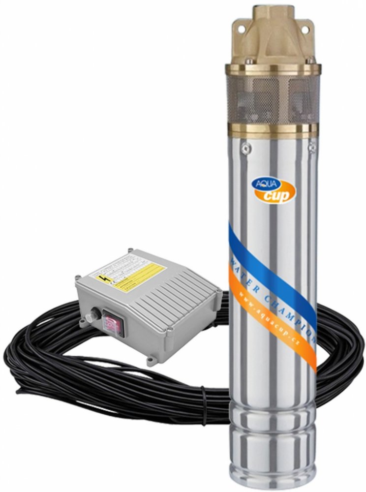 Ponorné čerpadla o průměru 3" (75 mm) a 4" (96 mm) s kabelem o délce 20 nebo 30 metrů a ovládací elektroskříní v provedení motoru 230 V.