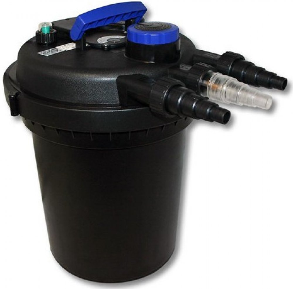 Uzavřený tlakový filtr určený pro okrasná zahradní jezírka do maximálního objemu 10 m3.
