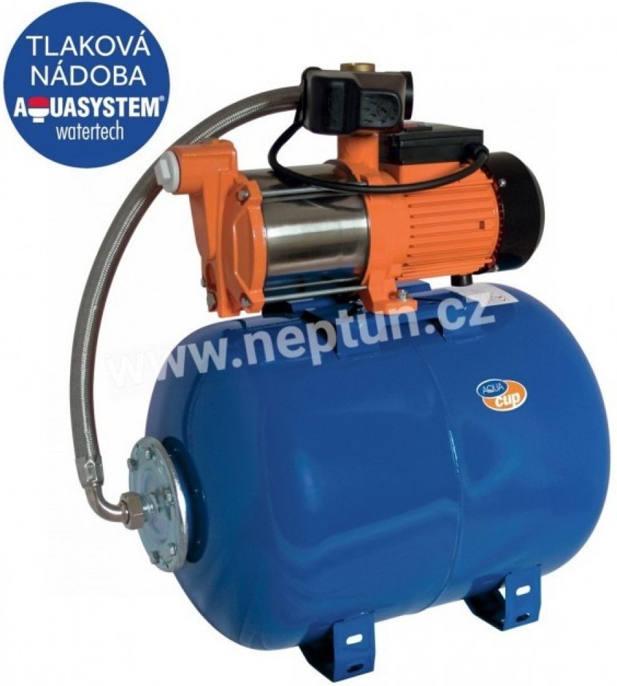 Automatické vodárny s vícestupňovým odstředivým čerpadlem, tlakovou nádobou s vakem a nastavitelným tlakovým spínačem.