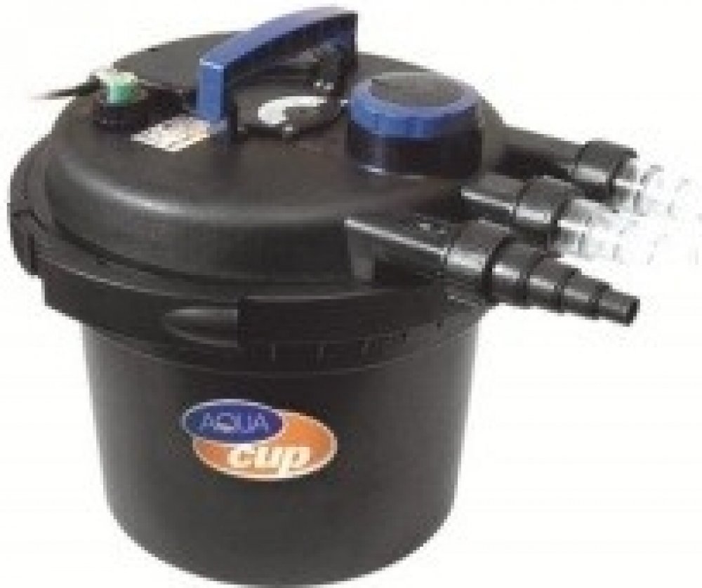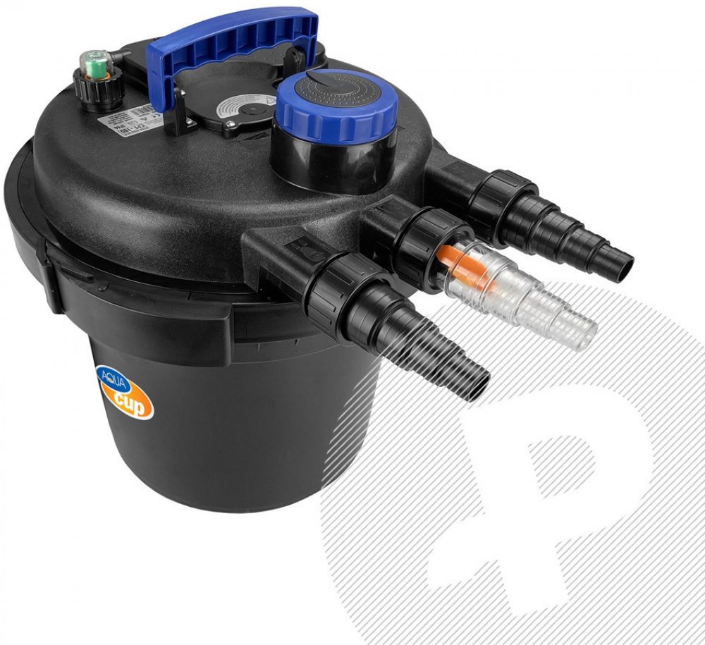 Tlakový filtrační systém určený pro okrasná zahradní jezírka do maximálního objemu 6 m3. Možnost umístění mimo břeh jezírka, výtok vody z filtrace lze využít na potůček či vodopád. Filtrace má přepínání režimu provozu a praní.