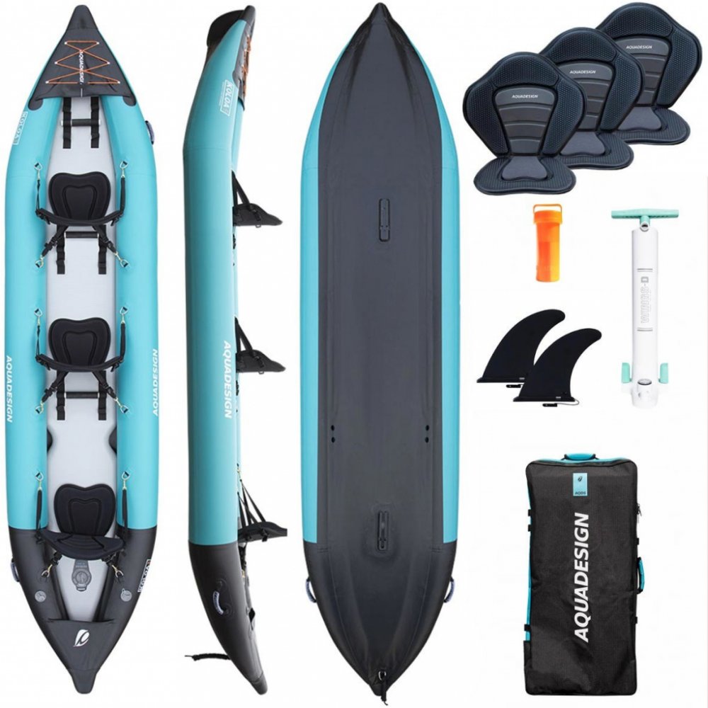 AQUADESIGN Koloa 400 je nafukovací turistický kajak pro tři osoby, který kombinuje mimořádnou stabilitu a odolnost. Díky vysokotlaké Dropstitch podlážce nabízí skvělou ovladatelnost a komfort i v náročnějších podmínkách. Je ideální pro rodiny, rekreační jezdce i skupiny hledající spolehlivou loď na moře, jezera a řeky až do ob...