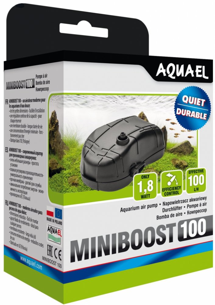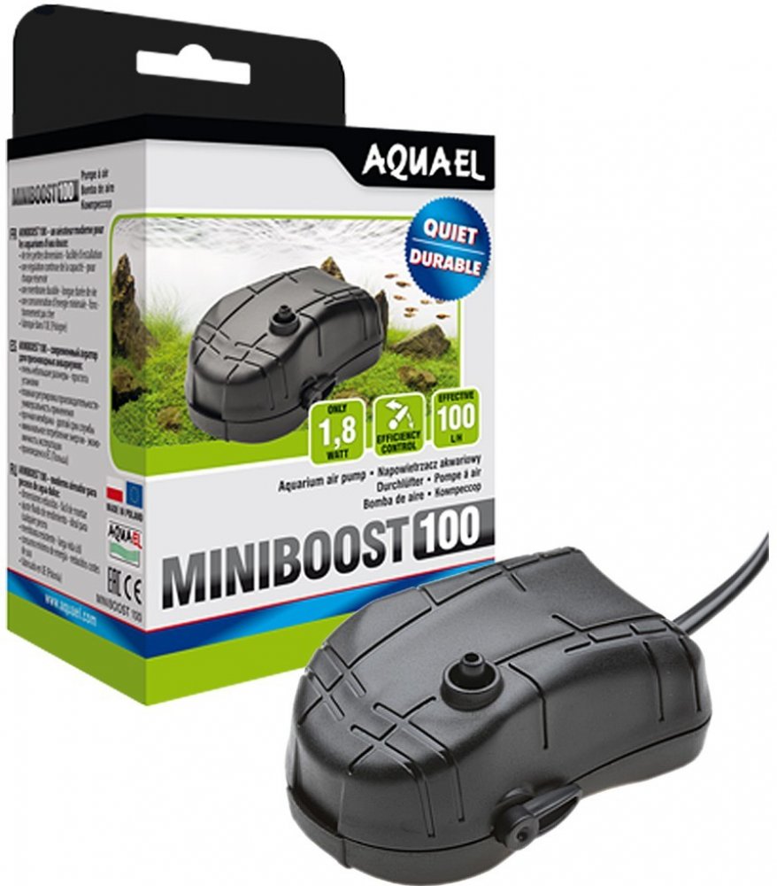 Membránová pumpa pro provzdušňování vody v akváriích a napájení houby a půdního filtru.