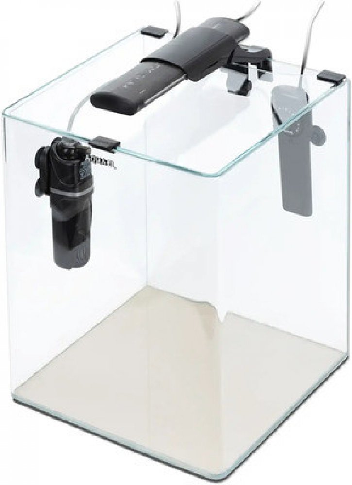 Nejdůležitější vlastnosti výrobku: Objem: 29 l, rozměry 29 x 29 x 35 cm. Osvětlení: LEDDY SLIM DUO, 10 W, SUNNY (7000 K) a PLANT (8000 K), 3 režimy (DAY/DAYBREAK/NIGHT). Filtrace: Vnitřní filtr FAN MINI PLUS s regulací průtoku. Topení: ULTRA HEATER, 25 W, se systémem Smart Heating. Víko: Ventilátor pro ohřev vody, který je součástí dodávky: Skleněné víko: sklo s optickým sklem, zaoblené rohy, bez silikonu na přední straně. Příslušenství: Ochranná houbová podložka pod nádrž. Použití: Sladkovodní akvária, nádrže s krevetami, nádrže s rostlinami. Celkový příkon: 35 W (10 W osvětlení + 25 W topení).