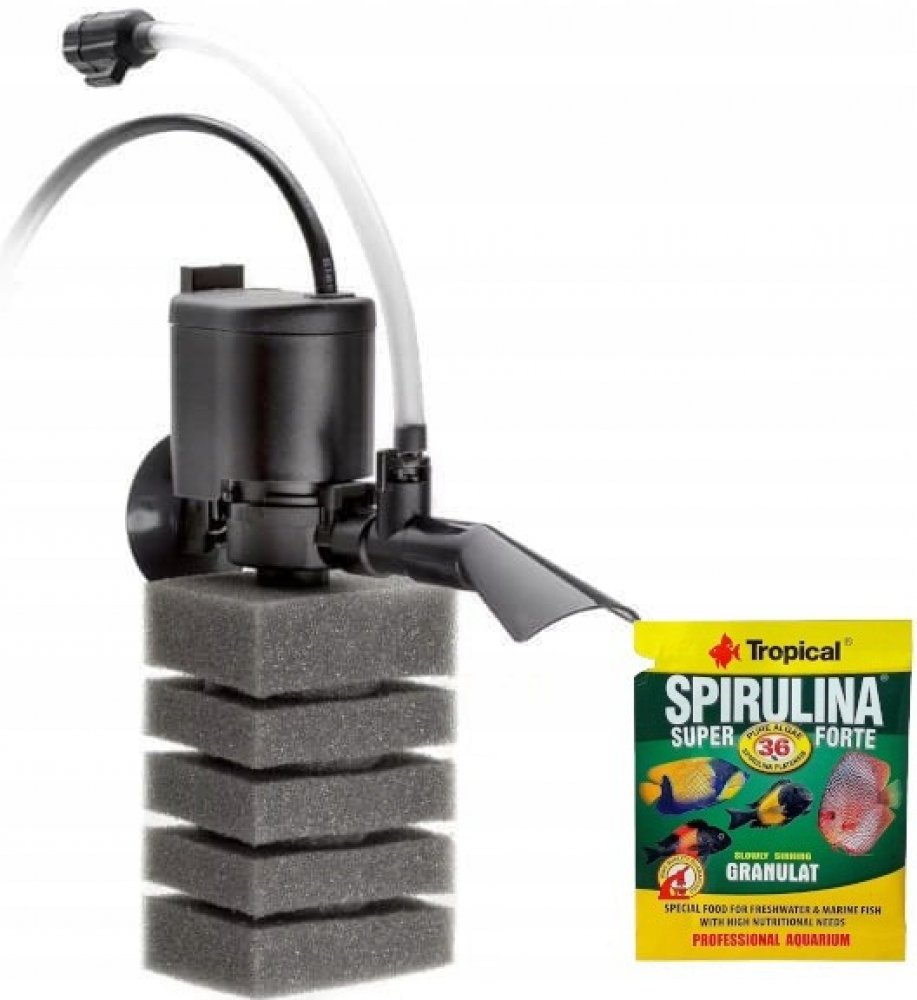 - Mechanická filtrace - přiložená houba zachytí i ty nejmenší nečistoty z vody a zároveň je ideálním substrátem pro usazování kmenů prospěšných nitrifikačních bakterií.