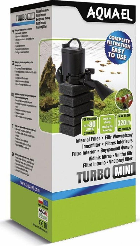 Turbo Mini od společnosti Aquael je kompaktní filtr pro sladkovodní akvária. Je speciálně navržen tak, aby poskytoval nejlepší životní podmínky pro krevetky a malé rybky. Zajistí dostatečnou filtraci vody v nádržích od nano do 80 litrů s minimální spotřebou energie.