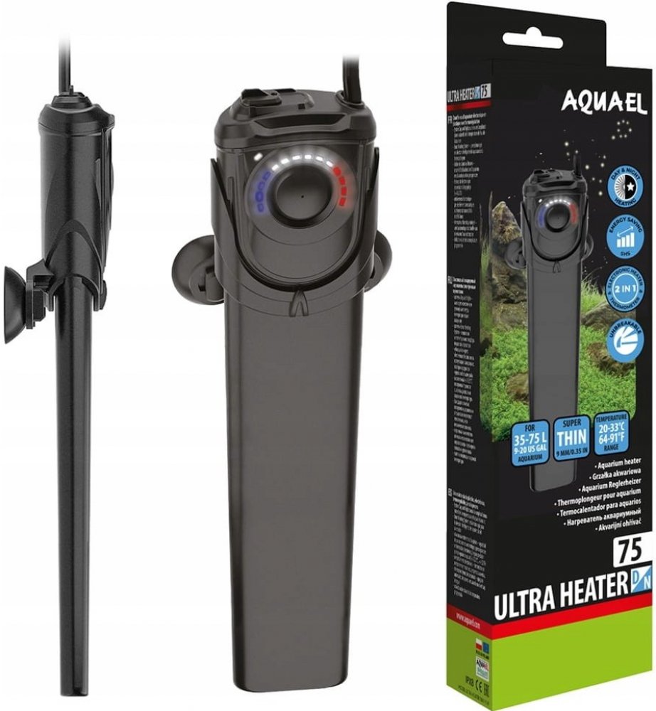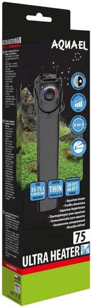 Ultra Heater Day&Night má moderní plochý design, který šetří místo, a přehledný displej zobrazující aktuální i nastavenou teplotu. Díky oboustrannému závěsu ho lze snadno umístit kamkoliv v akváriu. Systém Smart Heating System optimalizuje výkon, čímž snižuje spotřebu energie bez ztráty účinnosti.