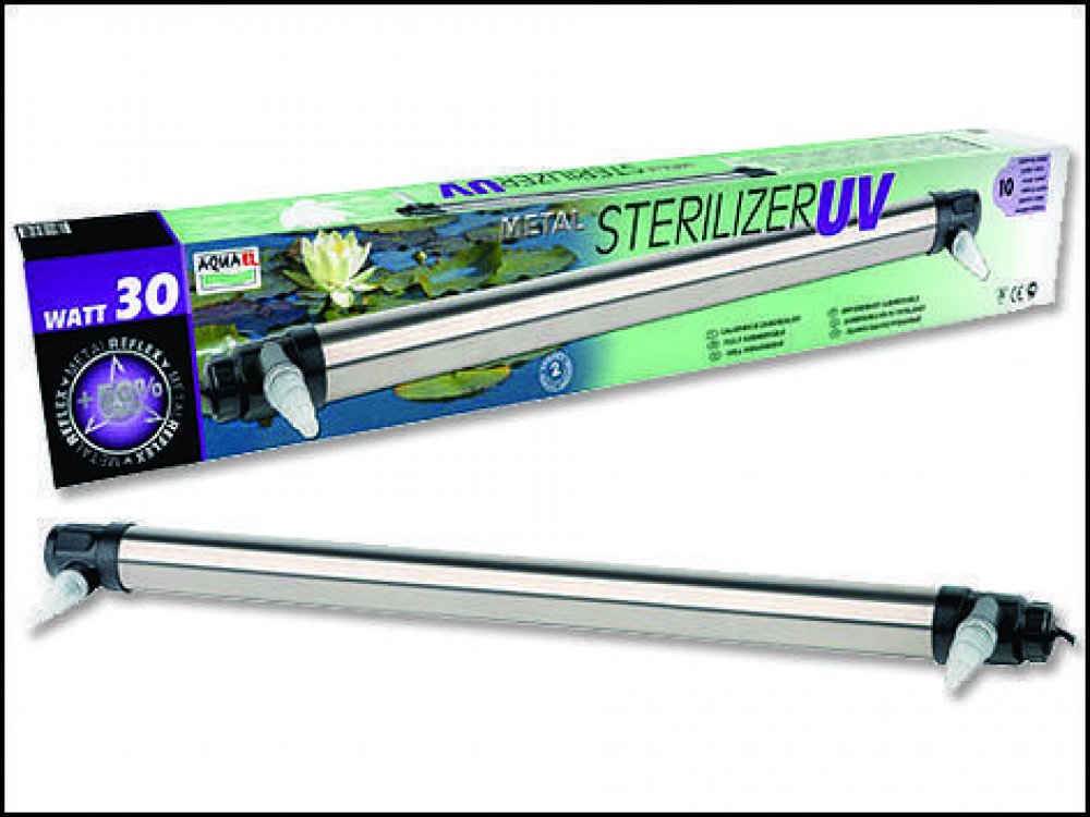 UV sterilizátor funguje na principu působení ultrafialového záření s velmi vysokou intenzitou na jednotlivé buňky řas, bakterií nebo parazitů ve chvíli kdy voda, která je obsahuje protéká zařízením. Záření UV zabíjí řasy a vyvolává jejich slepování do hrudek. Výsledkem je krystalicky čistá voda ve všech zahradních a chovných jezírcích a všude tam kde existoval problém se špinavou a zelenou vodou. Životnost zářivky je cca 8000 hodin.