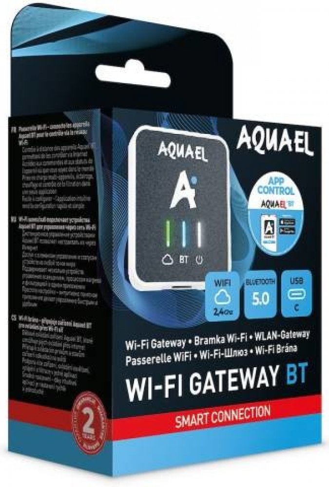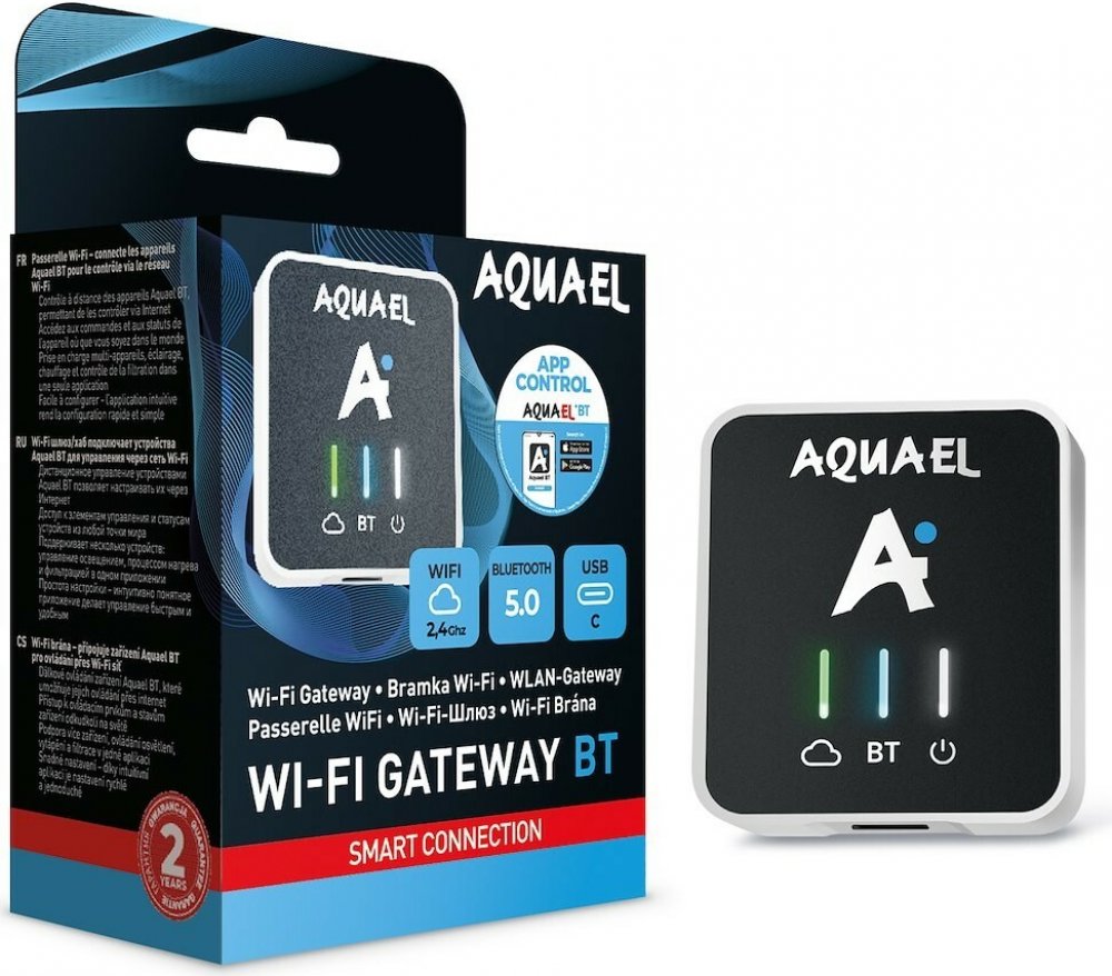 WiFi Gateway BT je nejmodernější zařízení, které otevírá zcela nové možnosti vzdálené správy akvarijních zařízení Aquael. Umožňuje ovládat kompatibilní zařízení odkudkoli na světě - potřebujete pouze chytrý telefon a přístup k internetu. Toto zařízení umožňuje ovládat filtraci, topení a osvětlení jednoduše prostřednictvím telefonu nebo tabletu! Zlepšíte tak každodenní péči o akvárium a stabilitu parametrů vody i účinnost používaných zařízení.