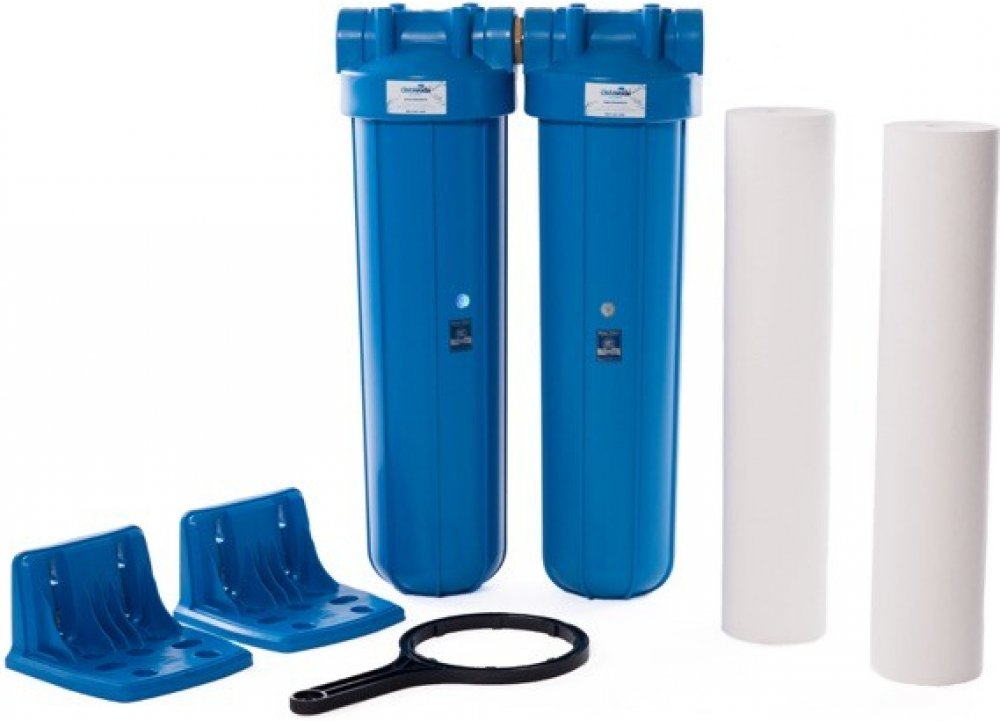 Velký robustní filtr na vodu značky BigBlue® DUO kompatibilní s filtračními vložkami BigBlue velikosti 20". Filtr na vodu je dodáván s držákem, klíčem a dvěma mechanickými filtračními vložkami s 20 a 5 mikronovou propustností.Do budoucna možnost vyměnit za libovolné filtrační vložky BigBlue s rozměrem 20" z naší nabídky vložek.Specifikace:Rozměry: 610 x 175 mm (x2)Připojení: 1"