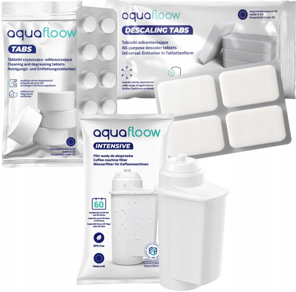 Sada AquaFloow pro kávovar Siemens: vodní filtr + čisticí a odmašťovací tablety + odvápňovač v tabletách