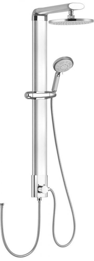 Sprchový sloup TOUR se přibalenou hadicí propojí se sprchovou baterií. Může se instalovat na stěnu nebo do rohu sprchového koutu. Přepínačem lze zvolit proud z ruční nebo z hlavové sprchy.