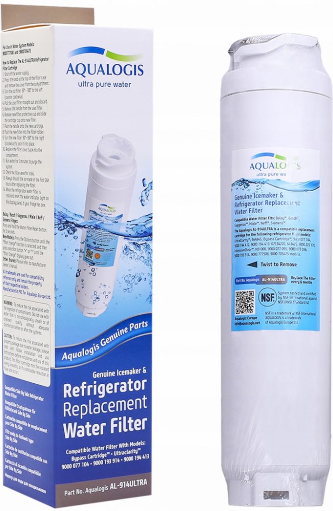 Filtr AQUALOGIS AL-914ULTRA, kompatibilní s BOSCH / SIEMENS 9000 777 508, 9000 193 914, je vysoce efektivní nástroj pro zachování čistoty a svěžesti vody v vaší lednici. Díky tomuto filtru můžete být jisti, že voda nebo led, který konzumujete, je čistý a svěží, bez nežádoucích nečistot a chemických látek, které by mohly ovlivnit chuť.