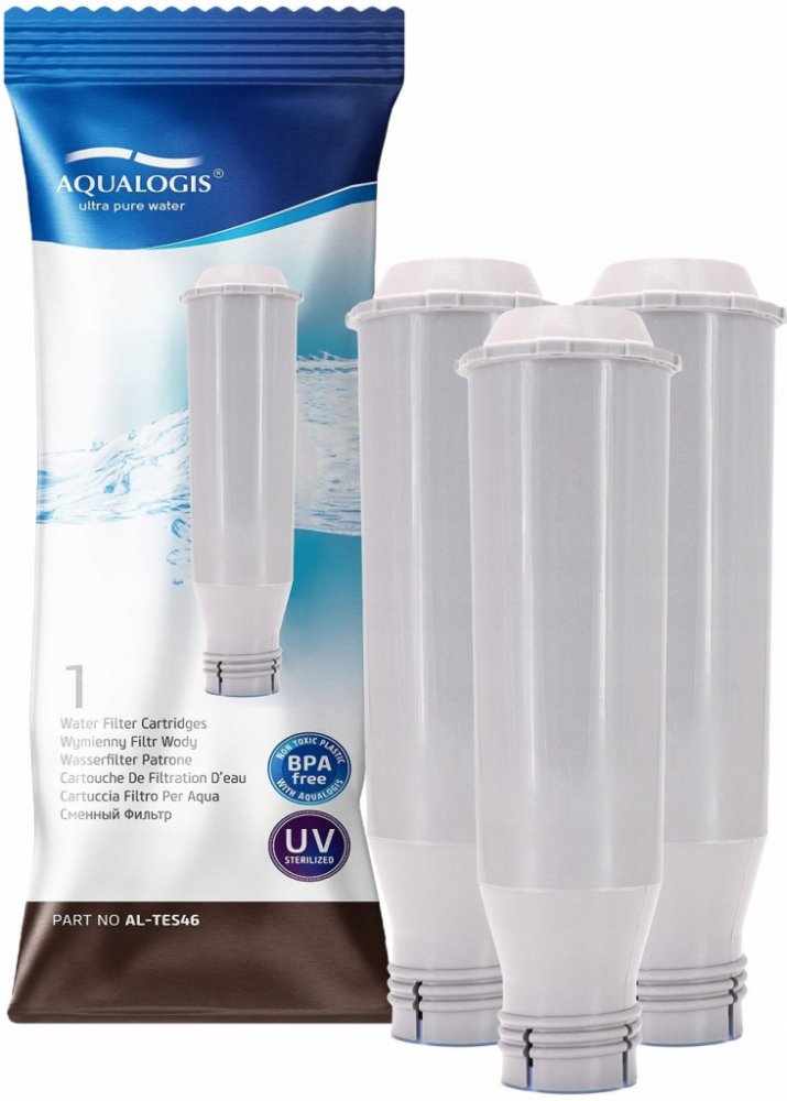 Filtr vysoké kvality zabraňuje usazování vodního kamene a je kompatibilní s šroubovacími filtry AEG 9000849514, Bosch TCZ6003 461732, Siemens TZ60003, Krups F088 / F08801 a Nivona NIRF700.