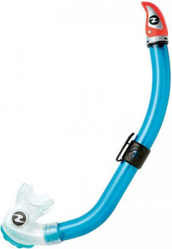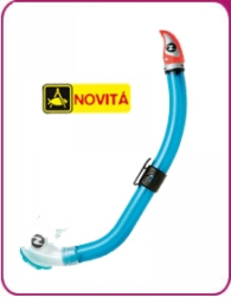 Špičkový silikonový šnorchl s dvojitým ventilem, vlnolamem a ortodontickým náústkem.