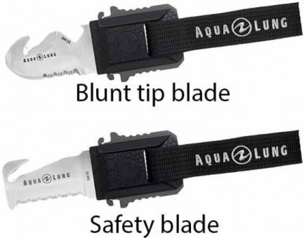 - Čepel Blunt Tip: zajišťovací mechanismus Squeeze Lock, tupá špička pro páčení a šroubování, zářez na přeříznutí lana, otvírač lahví, možnost připevnění k opasku / kompenzátoru vztlaku a prodlužovací řemínek na rukojeti