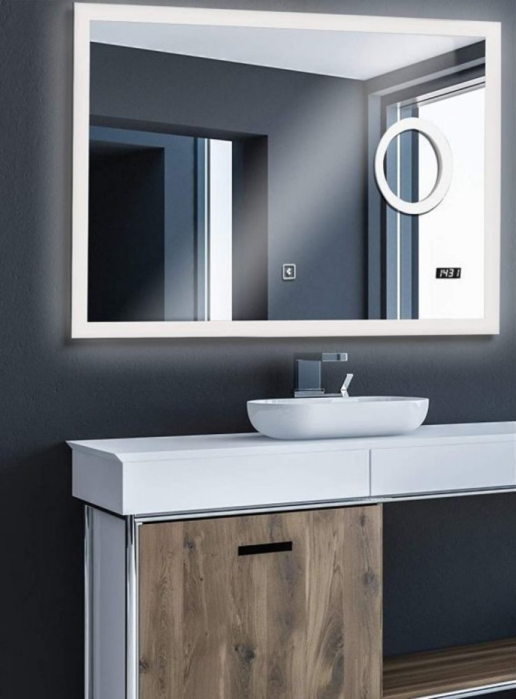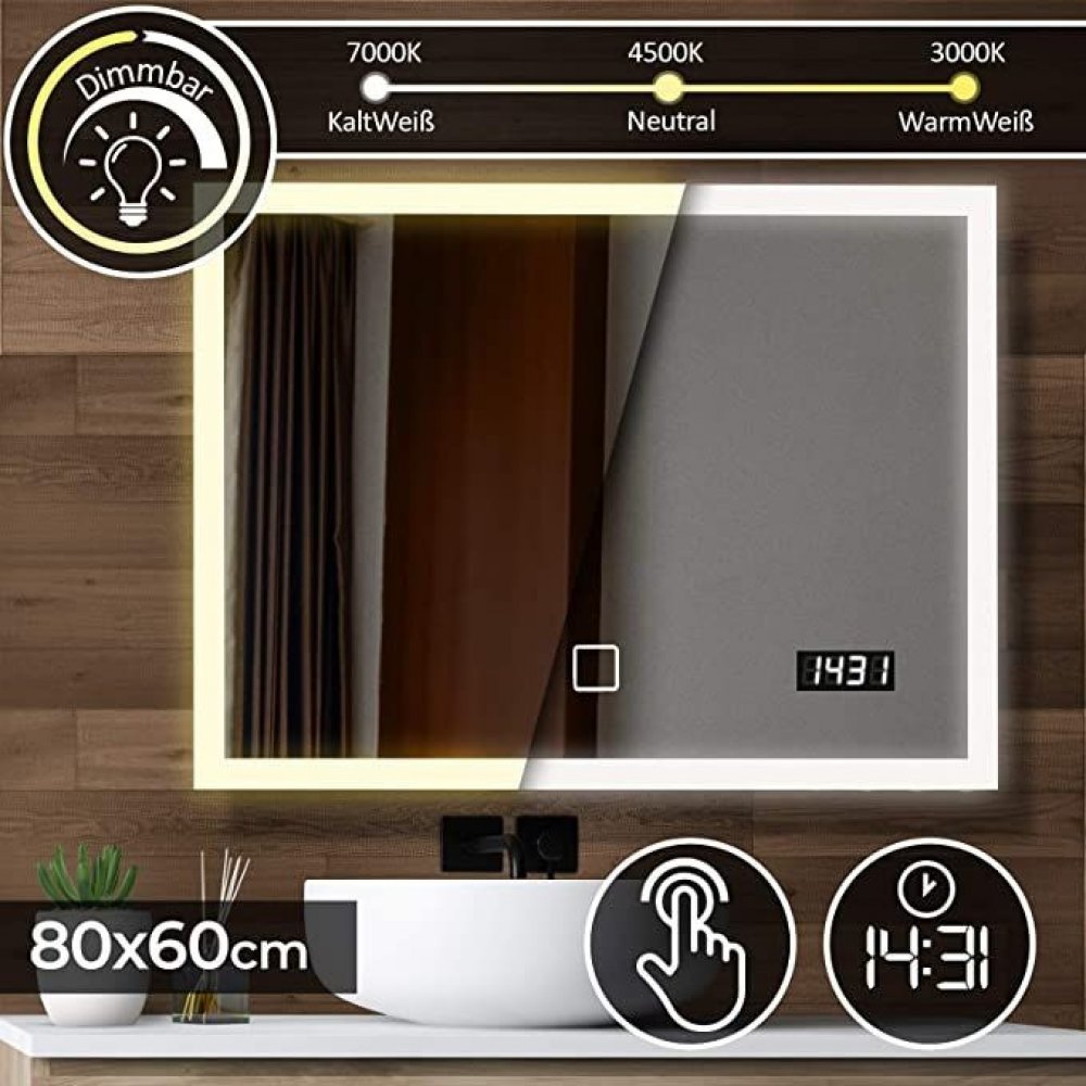 Toto koupelnové zrcadlo s osvětlením má digitální hodiny a bluetooth reproduktor, stejně jako kosmetické zrcadlo. Dotykové zrcadlo poskytuje speciální ambientní osvětlení, které odpovídá vaší náladě. Lze nastavit od teplého bílého až po studené světlo. Toto zrcadlo je bez mědi a obzvláště odolné proti vlhkosti.