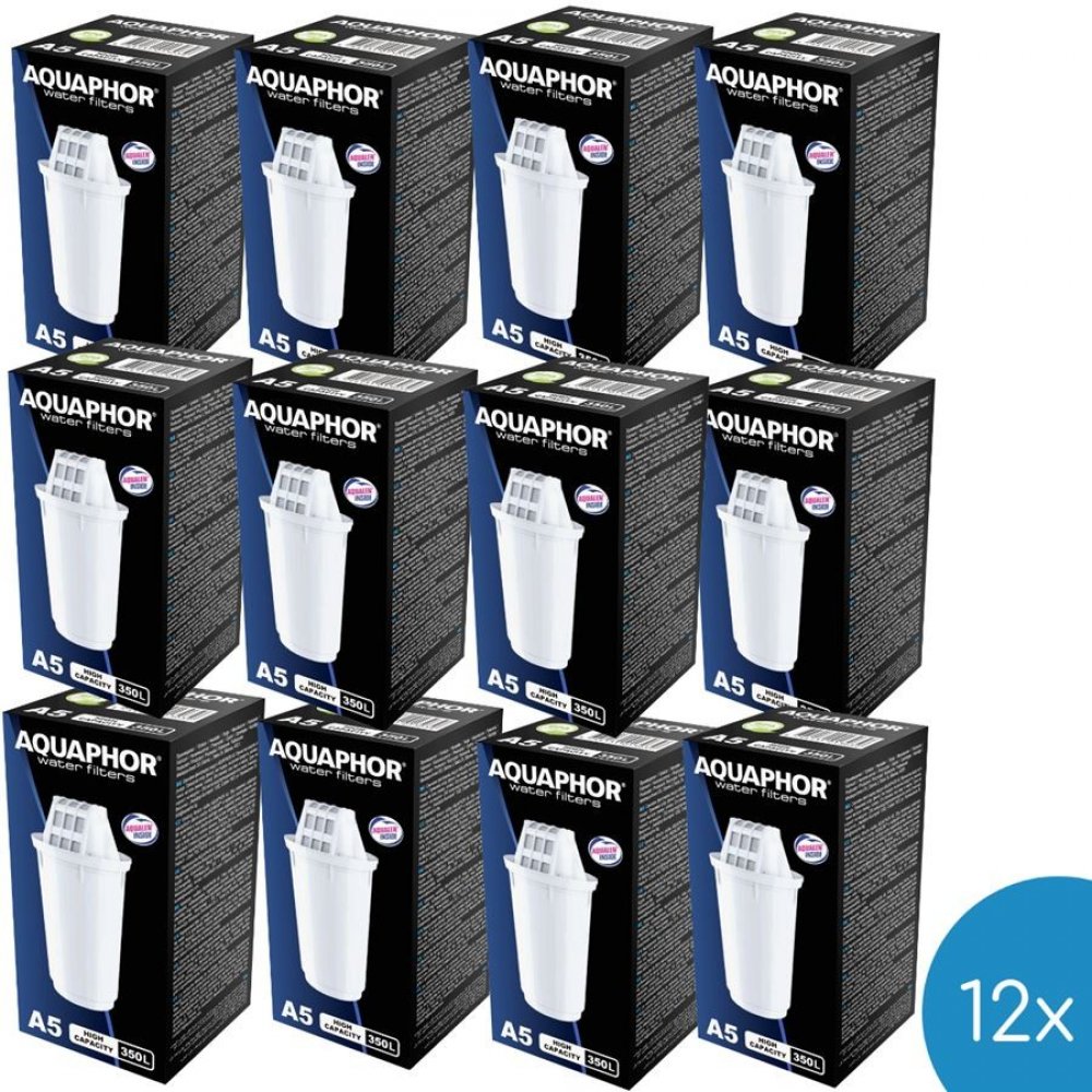 Aquaphor A5 vodní filtr do filtračních konvic 12 ksFiltrační konvice, které filtrují vodu z kohoutku, se stávají každodenní záležitostí. Jsou již ve většině domácností a svou funkci plní dokonale.Díky nim se můžeme těšit z finančních úspor a nemuset nosit tolik zátěže z prodejny a chránit životní prostředí.Pro správnou funkci každé filtrační konvice jsou však nutné filtry. Aquaphor A5 je skvělá volba! Proč? Zlepšuje chuť vody. Hloubkové čištění vody od nečistot.Vodní filtr Aquaphor filtr A5Filtrační patrony Aquaphor A5 účinně redukuje nečistoty obsažené ve vodě z vodovodního řádu, jako jsou například chlor, pesticidy, herbicidy, těžké kovy, fenoly a ropné produkty. Tím je zajištěno, že nápoje budou zdravější, chutnější a bez zápachu chlóru.Aquaphor filtr A5 se skládá z filtrační směsi aktivního uhlí, iontoměničové pryskyřice a inovativního vlákna Aqualen.Filtry obsahují Aqualen (materiál vyvinutý a patentovaný značkou Aquaphor), sorpční materiál, který zajišťuje:• rychlé odstranění nečistot;• účinné odstraňování těžkých kovů z vody jakékoliv tvrdosti;• lepší bakteriostatické vlastnosti díky aktivovanému stříbru;• použití při nízké tvrdosti vody do 250 mg/l;• bez kapilárního efektu a tzv. bypassu dochází k 100% filtraci.Filtry byli dříve označeny jako Aquaphor B5.Použití vodního filtru?Filtr je umístěn uvnitř nálevky ve filtrační konvici. Voda, která jím proteče, se okamžitě čistí a protéká do spodní části konvice.Odtud se dá bezpečně nalít do sklenic, konvice nebo použít k vaření.Filtr zajišťuje dlouhou účinnost filtrace až 350 litrů přefiltrované vody nebo 3 měsíce používání pro 3 - 4 člennou rodinu.Filtr je kompatibilní s filtračními konvicemi Aquaphor: Aquaphor Provance. Aquaphor Prestige. Aquaphor Orleans. Aquaphor Dalia. Aquaphor Artic. Aquaphor Smile.Obsah balení 12x filtrační patrona Aquaphor A5.Filtrační patrony Aquaphor A5 jsou k dostání také v balení po 2 kusech, 4 kusech, 6 kusech, 8 kusech či 12 kusech.Bezpečnostní zdroje Aquaphor International OU, Tolstoi 2A, 40231, Sillamäe, Estonia +3723562204, pro.sales@aquaphor.com ,