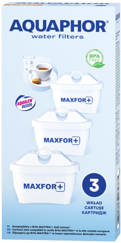 AQUAPHOR B-25 Maxfor – univerzální vyměnitelná filtrační vložka určená pro filtrační konvice. Účinně odstraňuje z vody prakticky všechny škodlivé nečistoty pro naše zdraví, zlepšuje její barvu, chuť i vůni. Určeno pro čištění vody se středním stupněm tvrdosti (do 200 mg/l).