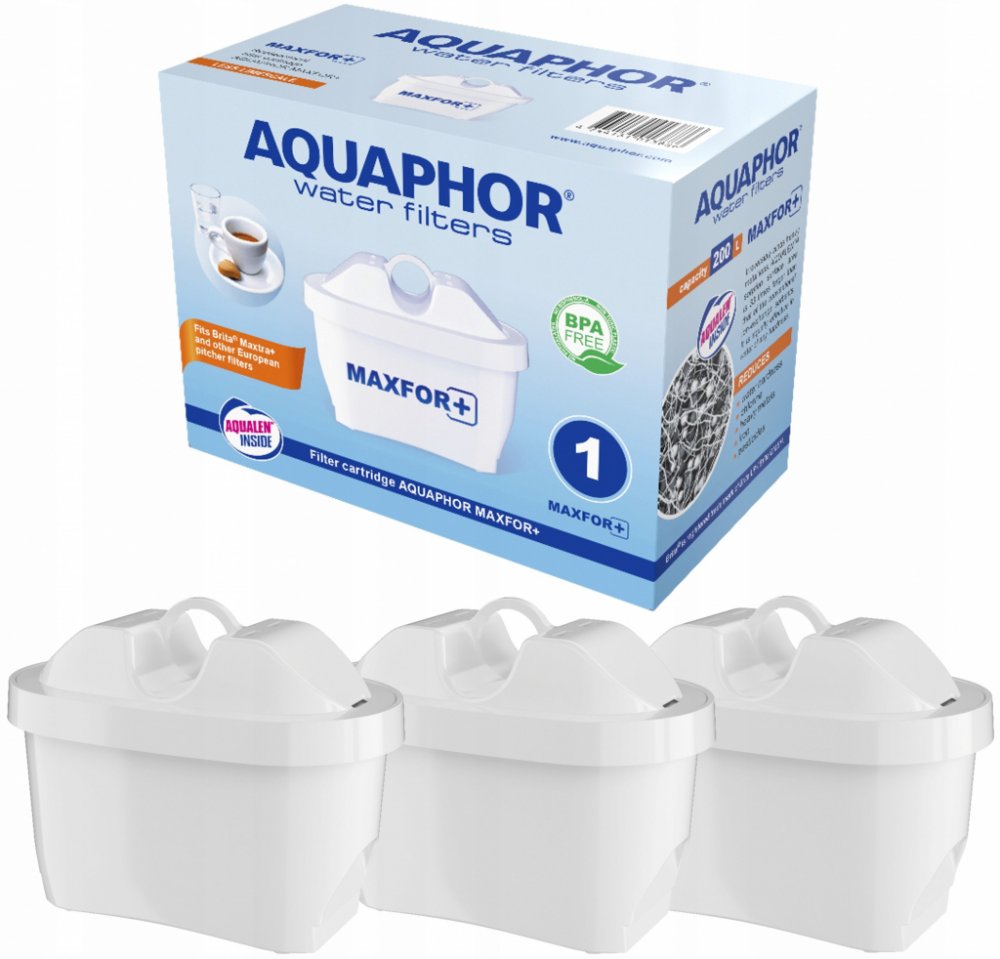 Balení náhradních filtračních vložek k filtračním konvicím AQUAPHOR Onyx, Ametyst, Compact a Glass. Jedná se o univerzální filtr, který se hodí se i do dalších Maxtra-fit filtračních konvic od jiných výrobců (např. Brita).