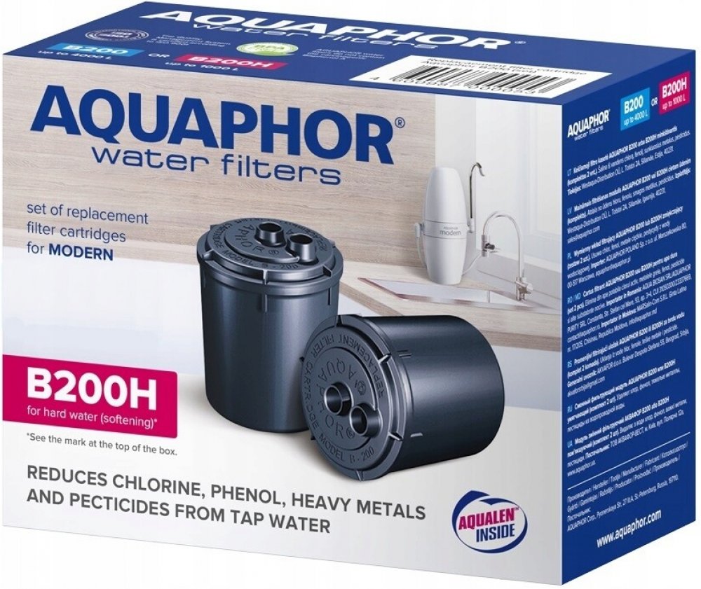 Náplně B200H určené pro tvrdou vodu. U těchto náplní dosahuje kapacita 1000 l, což umožňuje použití 1 sady náplní až 6 měsíců v závislosti na stupni tvrdosti vody.