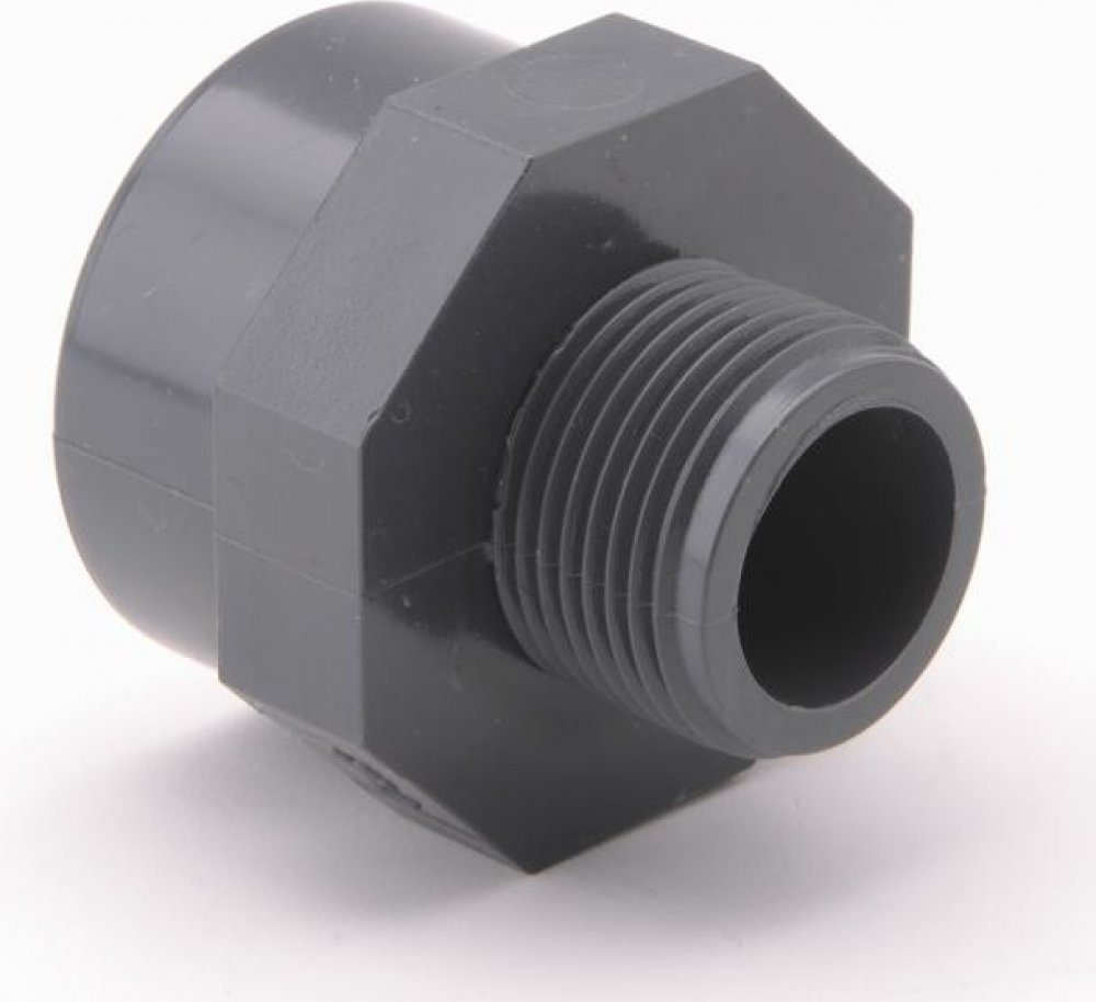 AQUAPLASTIK MORAVA PVC redukce v rozsahu od 1/2 "x 3/4" do 6/4"x 2". Menší závit je vnější, větší závit je vnitřní.