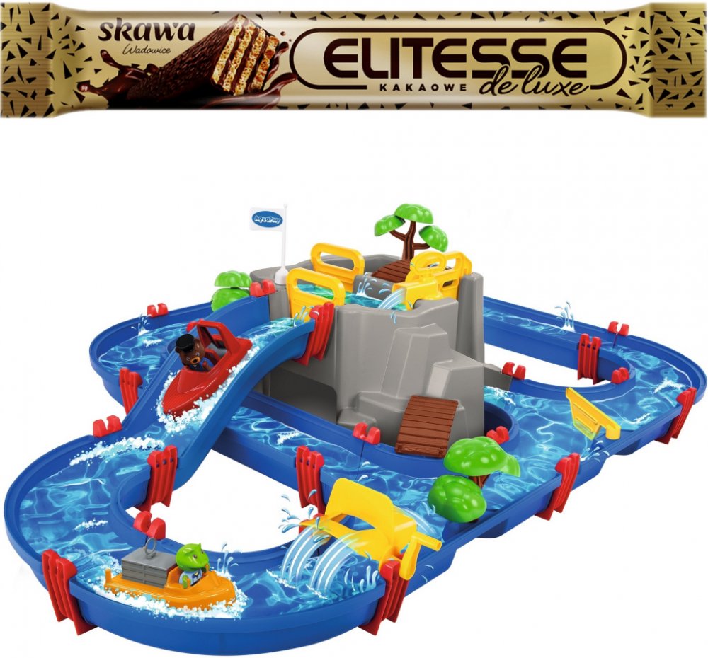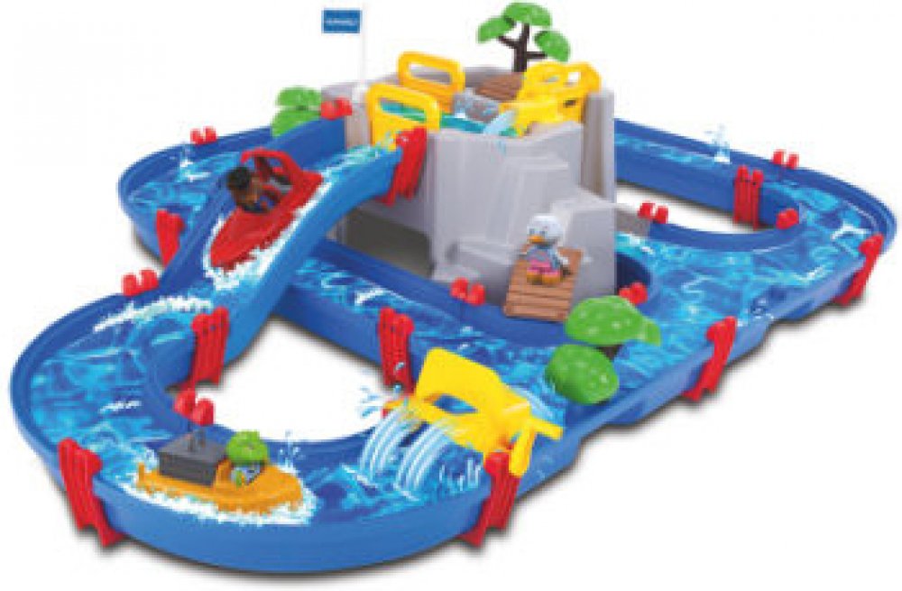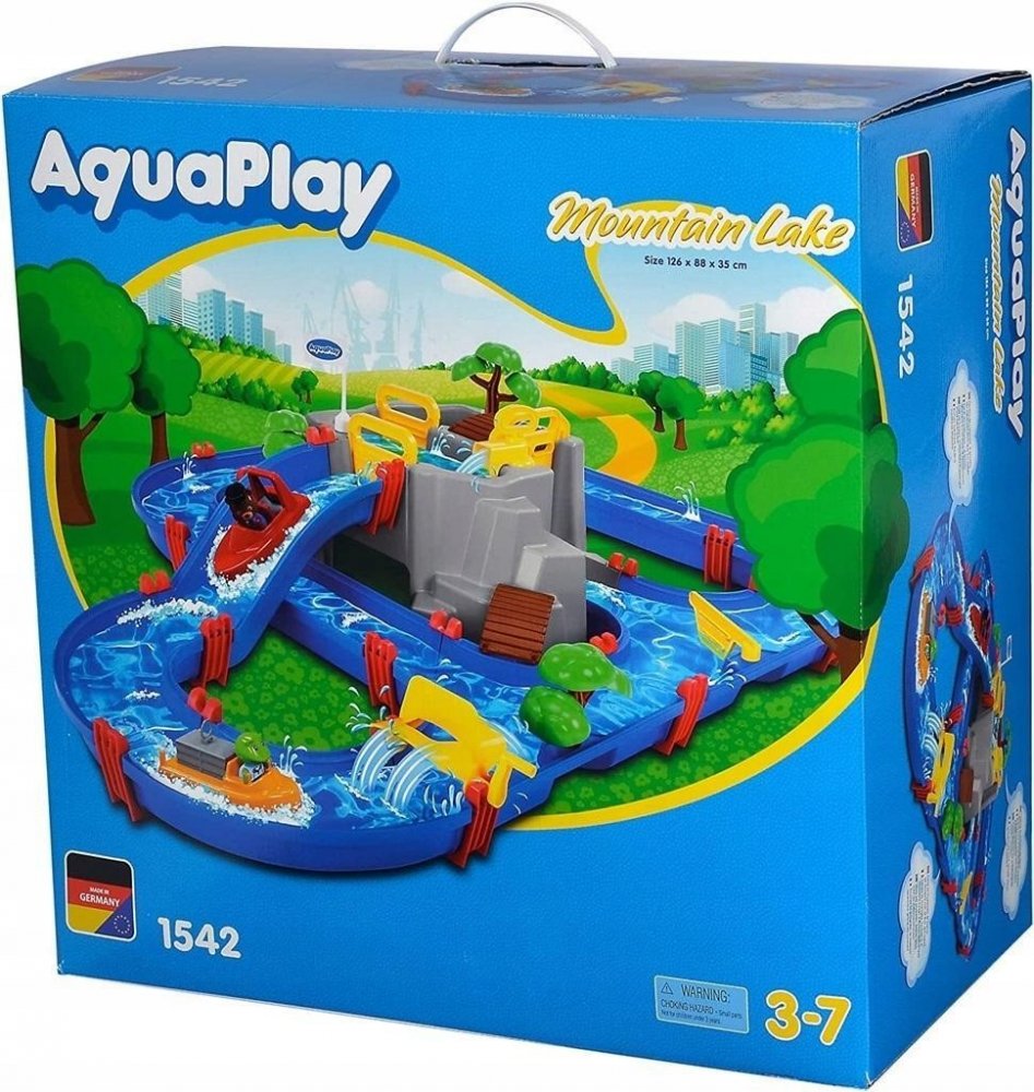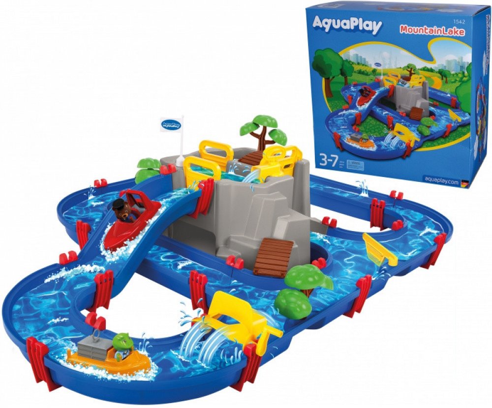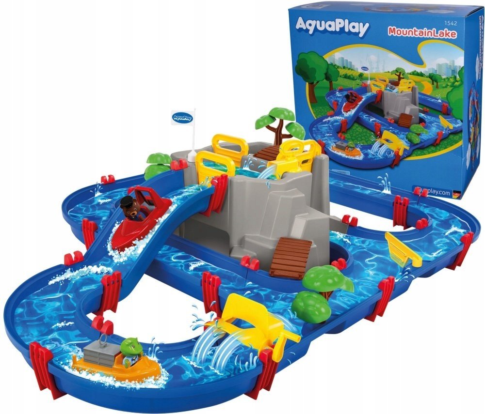 Vodní dráha AquaPlay Mountain Lake je vodní hra pro všechny děti se zajímavou jeskyní ve střední části. Je to vyvýšená hora s jeskyní a přehradou. Na vrcholu hory se nachází přehrada, do které se dá mechanicky napustit voda pomocí vodní pumpy. Vytvoří se tak horské jezírko s mostem a stromečkem, ke kterému mohou jet na dovolenou přibalená 4 zvířátka – medvídek Bo, hrošice Wilma, žabka Nils a kachn...