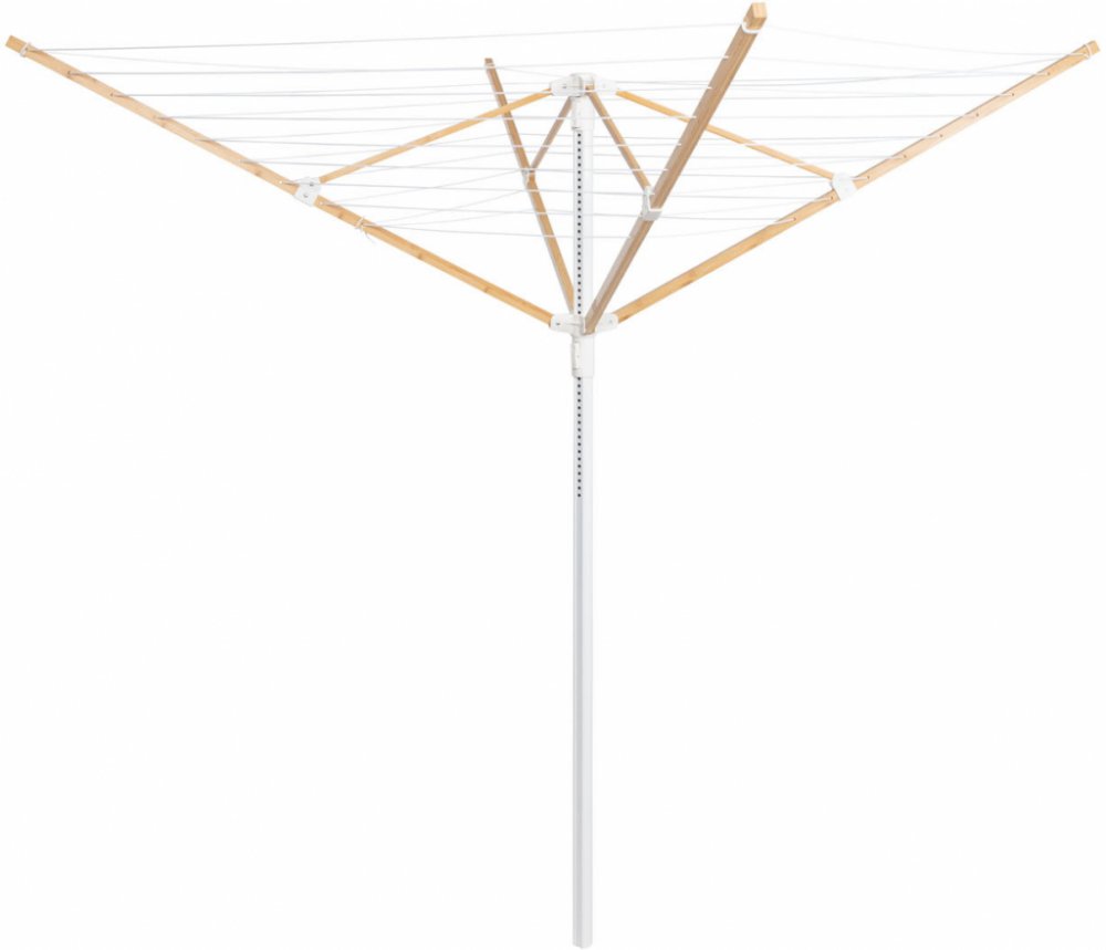 AquaPur Sušák na prádlo Celková délka šňůry na prádlo: cca 40 m Snadné otevírání a zavírání Rovnoměrně napnutá šňůra na prádlo Stabilní konstrukce s trubkovým stojanem z oceli s práškovou vrstvou Nosná a pomocná ramena z bambusu Robustní šňůry na prádlo s vrstvou odpuzující špínu Nastavitelná výška (cca 160–185 cm) pro pohodlné zavěšení a svěšení Vhodný až pro 4 náplně pračky Odolný ochranný obal se zipem Včetně objímky pro osazení do země Max. nosnost při rovnoměrném rozložení: cca 40 kg Materiál Ocel, železo, bambus Rozměry Zavřený: cca 11,5 x 11,5 x 180 cm Otevřený: cca 155 x 155 x 160–185 cm Rozpětí: cca 1,55 m Průměr (otevřený): cca 2,20 m Využitelná výška (otevřený): cca 1,85 m Průměr trubkového stojanu: cca 4 cm Hmotnost cca 4 kg
