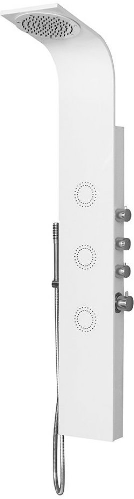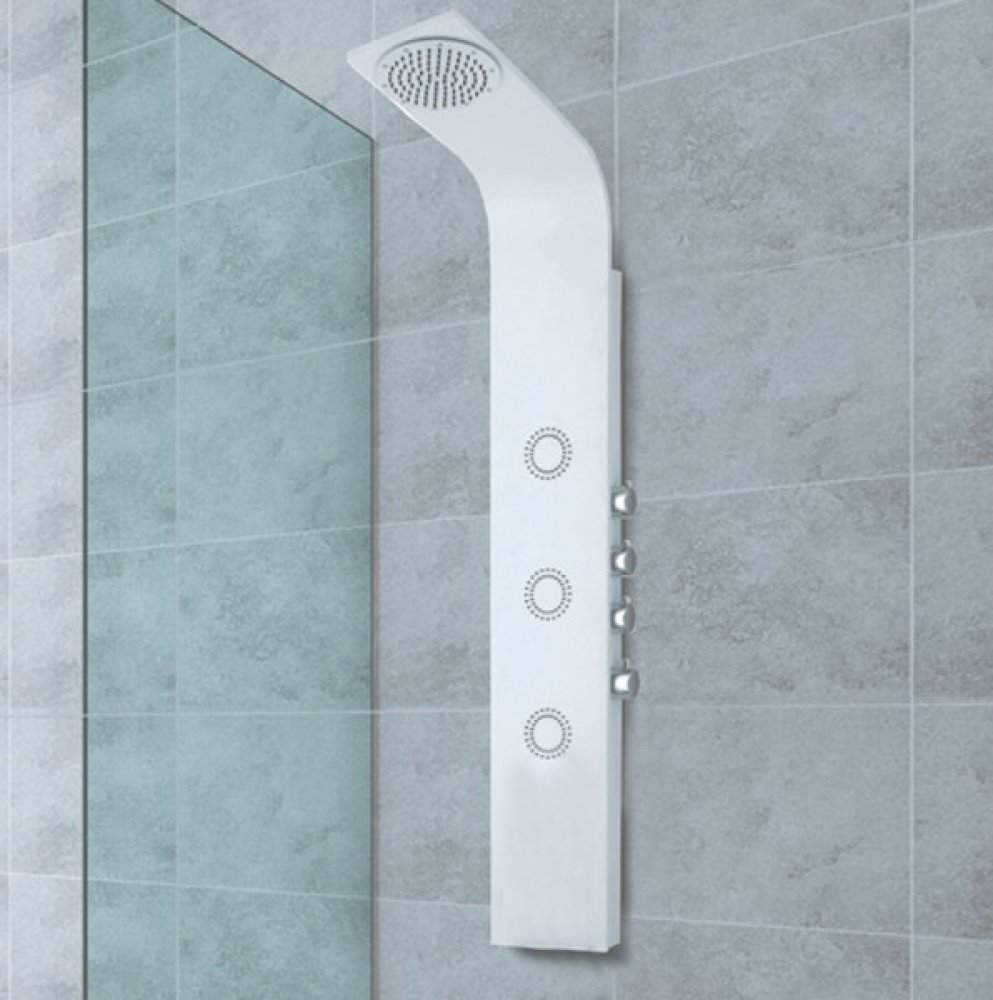 Luxusní hliníkový sprchový panel Ibiza, bílý lesklý Zboží je na objednání s dodací lhůtou cca.1 týden.O přesném termínu dodání Vás budeme informovat. Slovenský výrobek Základní popis: Rozměry: 135x20cm Materiál: hliníkový Barva: bílá lesklá Baterie: mechanická Příslušenství sprchového panelu - mikrotrysky - Pevná sprcha s mikrotryskami s vodopádem - Kovová ruční sprcha - Hliníkový panel - 2 hadice...