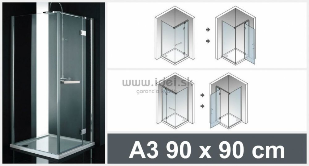 Sprchové kouty série CRYSTAL A3 s jedněmi otevíracími dveřmi na panty. Masivní provedení konstrukčních částí jako jsou panty, horní kotevní konzole a v neposlední řadě masivní úchyt pro pohodlné otevírání dveří, řadí tuto sérii do nejvyšší kategorie. Samozřejmostí je vyšší standard tloušťky bezpečnostního skla – až 8 mm a celková výška 200 cm. Vyrovnávací boční profil s 2 cm roztažením je zárukou pohodlné montáže při vyrovnávání rozměrových nedokonalostí a odchylek.