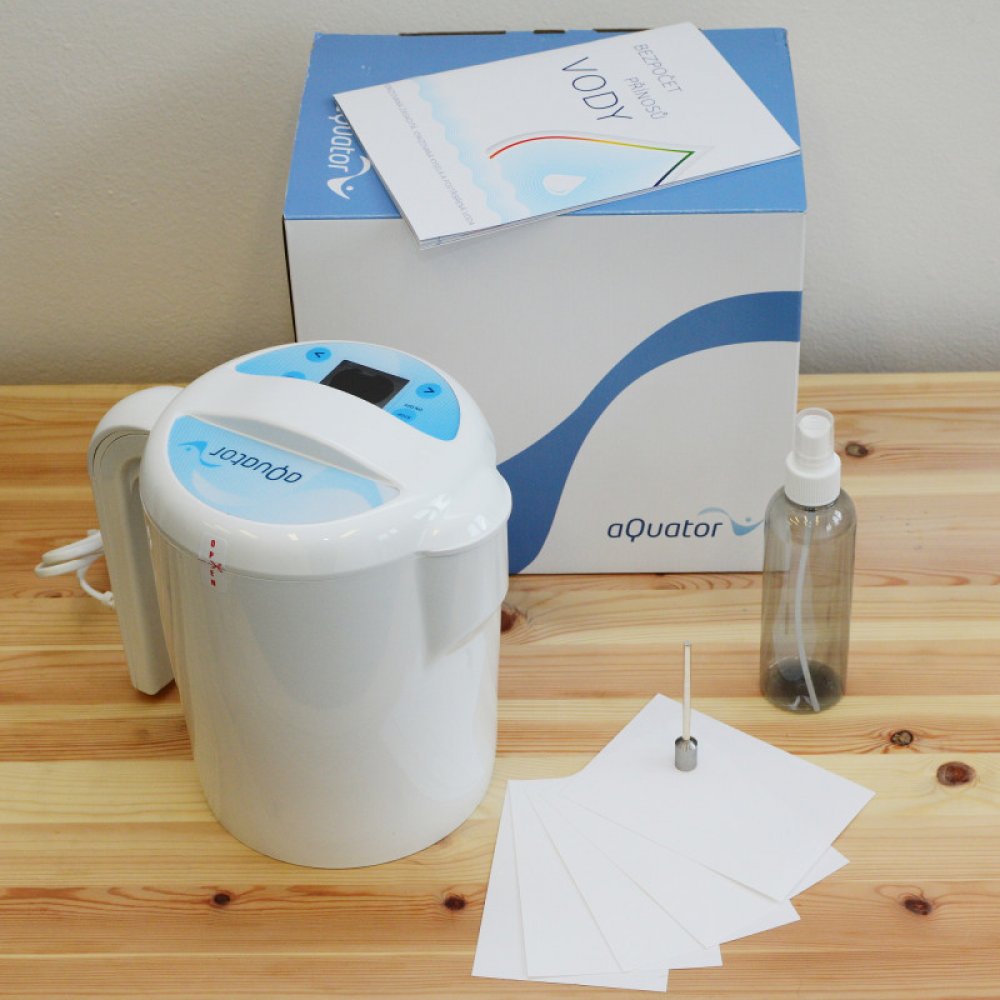 Ionizátor vody praktických rozměrů (3 l) s jednoduchým ovládáním na úpravu pH pitné vody s funkcí stříbření vody.Ionizátor vody aQuator Silver je praktické, cenově dostupné zařízení do domácnosti i na cesty, se kterým jednoduše a rychle (cca za 4 minuty) pomocí elektrolýzy vyrobíte ionizovanou alkalickou (živou/zásaditou) vodu a acidickou (mrtvou/kyselou) vodu. Přístroj má vysokou užitkovou hodnotu, protože v samostatném procesu dokáže vyrobit antibakteriální stříbrnou vodu, tzn. že součástí ionizátoru je i stříbrná elektroda. Vodní ionizátory jsou vyráběny z materiálů nejvyšší kvality a dlouhé životnosti. To umožňuje, aby toto zařízení bylo plně funkční až 27 let, pokud je používáno podle všech instrukcí. Přibližně 70% naší tělesné hmotnosti se skládá z vody a to má velký vliv na životně důležité procesy, které probíhají v našem těle. Lidé mohou přežít bez jídla déle než bez vody. Často mylně pociťujeme pocit hladu, přitom naše tělo ve skutečnosti požaduje vodu. V souvislosti s tím bychom všichni měli mít na paměti jedno jednoduché pravidlo: pít dostatek tekutin každý den. Nejde ovšem pouze o množství vody, které vypijeme. Stejně důležitá je kvalita a vlastnosti vody, kterou pijeme. — Hmotnost elektrody 9,7 g. Obsah stříbra 99,99 %, ostatní minerály ne více než 0,01 %.— Elektrodu není nutné vyměňovat. Stačí vám jedna po celou dobu životnosti konvice aQuator. Výrobou ionizované vody získáte 3 druhy vody pro podporu imunity, energie, vitality, krásy, proti stárnutí buněk. Každý druh vody je jiný, ale zároveň výjimečný svými vlastnostmi a i možnostmi jejích použití jak vnitřně, tak i zvenku těla. ALKALICKÁ VODA (zásaditá/živá voda)— Hydratace, pokrytí denního pitného režimu + působení pH a ORP— Přírodní antioxidant— Alkalizace, udržení rovnováhy mezi kyselinami a zásadami— Snížení rizika rakoviny— Snížení náchylnosti k mnohým chorobám— Úplná detoxikace a očista těla— Podpora imunity a aktivní prevence— Regenerace— Ústup a zmírnění bolestí— Lepší průtok krve, ředění krve— Vitalita, energie, pohoda ACIDICKÁ VODA (kyselá/mrtvá voda)— Antibakteriální— Antiseptická— Antialergická— Protizánětlivá— Dezinfekční — Sterilizační— Ničí bakterie, viry, plísně STŘÍBRNÁ VODA— Přírodní antibiotikum— Antibakteriální— Protizánětlivá— Stimulace a podpora imunity— Dezinfekce— Konzervace— Ničí bakterie, viry, plísně ORP (oxidační redukční potenciál)lonizovaná zásaditá voda vyrobená elektrolýzou má antioxidační vlastnosti, vyšší pH a je složena z menších molekulárních sloučenin, než je tomu u obyčejné vody.Aby se udržela správná kyselo-zásaditá rovnováha v těle, je třeba snížit škodlivý účinek volných radikálů. To je přesně to, co dělají antioxidanty. Antioxidační vlastnosti látek jsou měřeny ORP (oxidační redukční potenciál), což naznačuje schopnost roztoků přijímat nebo vydávat elektrony. Je-li hodnota tohoto měření negativní, pak je látka antioxidační, protože může darovat část svých nadbytečných elektronů. Je-li hodnota měření pozitivní, látka se kvalifikuje jako oxidant (tj. volný radikál), protože přijímá elektrony. ORP lidského těla se pohybuje od 50 do -200 mv. Naopak ORP většiny pitné vody a prakticky všech nápojů sycených oxidem uhličitým je pozitivní (oxidační) a v průměru se pohybuje v rozmezí od +150 do +250 mV. lonizovaná zásaditá voda má negativní ORP (0-900 mV). Jakmile se vypije ionizovaná zásaditá voda, tělo získá dodatečnou dodávku volných elektronů, které jsou pak připojeny k volným radikálům. To neutralizuje škodlivý účinek volných radikálů a chrání zdravé buňky, zabraňuje jejich mutaci, posiluje imunitní systém a zpomaluje proces stárnutí. Je důležité vědět, že ionizovaná zásaditá voda vyrobena elektrolýzou může udržovat negativní ORP pouze krátkou dobu - maximálně 24-36 hodin. Jakmile toto časové období uplyne, hodnota ORP vody se vrátí zpět na neutrální nebo slabě pozitivní. Proto se doporučuje konzumovat ionizovanou zásaditou vodu co nejčerstvější, nejlépe do 12 hodin od elektrolytického procesu. To také vysvětluje, proč nemůže být ionizovaná zásaditá voda balena v lahvi a prodávána spotřebitelům přímo. ZÁSADITÉ pH Hodnota pH měří obsah kyselin (tj. počet iontů H+) dané látky. Hodnota pH se může pohybovat od 0 do 14. Jak se pH zvyšuje od 7 do 14, zvyšuje se zásaditost (kapalina obsahuje více zásaditých hydroxylů a méně iontů vodíku). Jak pH klesá ze 7 na 0, zvyšuje se kyselost (kapalina obsahuje více vodíku a méně hydroxylových iontů). Tekutiny v těle (krev, cerebrospinální tekutina, lymfatická tekutina, mezibuněčná tekutina atd.) mají slabou zásaditost. Výjimkou jsou tekutiny žaludku, kůže a ženské vagíny, které jsou přirozeně kyselé. Parametry krve jsou mimořádně důležité, protože tělo může normálně pracovat pouze tehdy, pokud má krev nízkou zásaditost (7,35 - 7,45), a dokonce i nejmenší odchylka od tohoto rozsahu může být velmi nebezpečná. PH tělesných tekutin se mění a snižuje (okyseluje) kvůli negativním faktorům prostředí. Za účelem neutralizace těchto okyselujících účinků musí být tělo vybaveno dostatečným množstvím zásad. Vedle hydroxylových iontů obsahuje ionizovaná zásaditá voda také snadno absorbovatelné ionty zásaditých kovů (vápník, hořčík, draslík, sodík), které jsou nezbytné k neutralizaci kyselého odpadu. Denní spotřeba zásadité vody poskytuje tělu koktejl zásaditých iontů, který potřebuje k udržení rovnováhy mezi kyselinami v jeho tekutinách. lONIZAČNÍ PROCESV