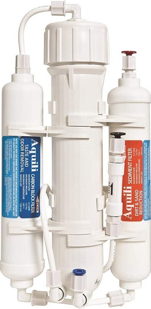 Jednotka zahrnuje sedimentační filtr, uhlíkový filtr a osmotickou membránu.