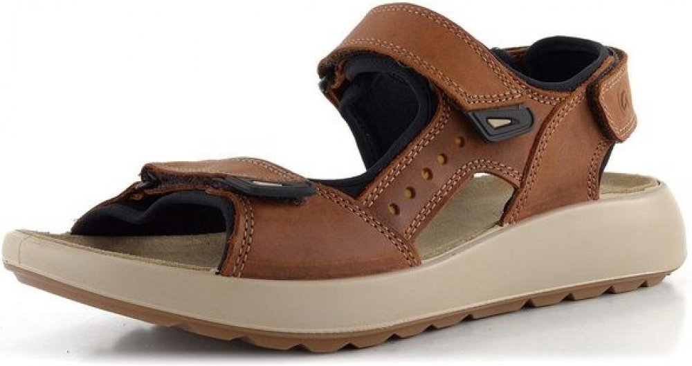 Pánské kožené sandály v hnědé barvě, se třemi upínacími pásky na suchý zip a příjemně měkkou nášlapnou stélkou.
