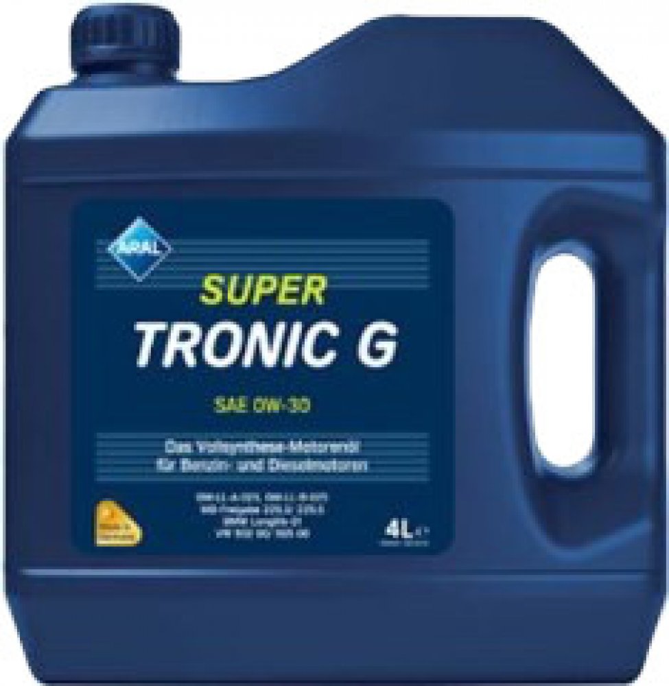 Aral SuperTronic E 0W-30, 4L Aral SuperTronic E 0W-30 je vysoce výkonný motorový olej se znamenitými lehkoběžnými vlastnostmi vyrobený Aral Synthetic-Technology, speciálně koncipovaný pro použití ve čtyřdobých zážehových i vznětových nejmodernějších motorech, jak podle specifikace ACEA A5, B5 požadují např. výrob...