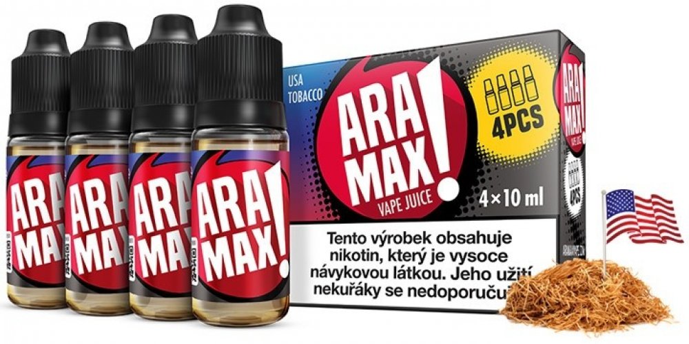 E-liquidy Aramax jsou dodávány v praktické krabičce, ve které se nachází čtyři 10ml lahvičky s e-liquidem. Všechny lahvičky jsou vybaveny úzkým kapátkem pro pohodlné plnění a samozřejmě také dětskou pojistkou. E-liquidy Aramax neobsahují diacetyl ani acetoin.