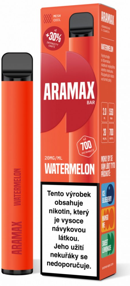 Jednorázová e-cigareta Aramax BAR 700 - Watermelon 20mg
